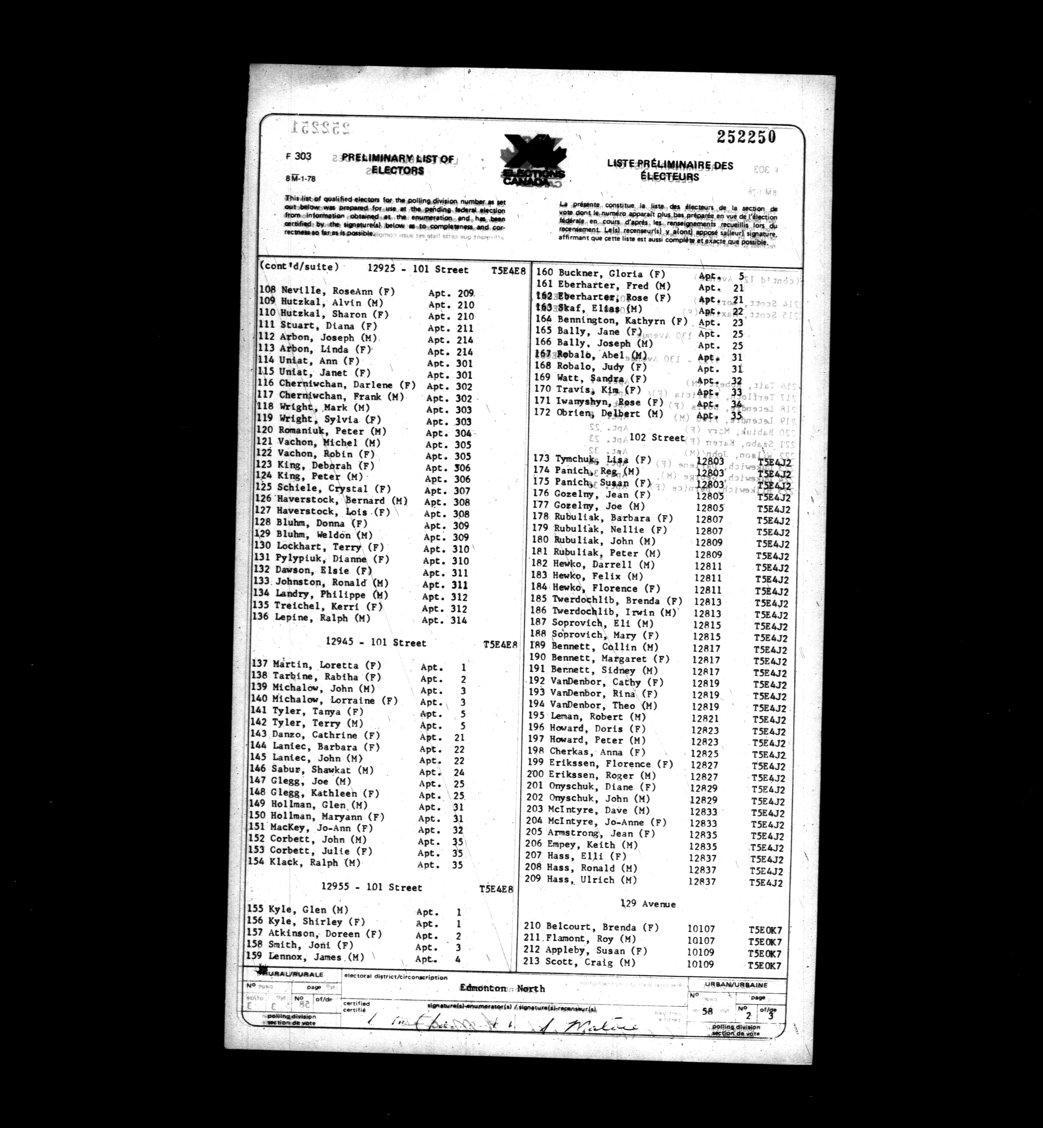 Office of the Chief Electoral Officer : Preliminary List of Electors : T-700