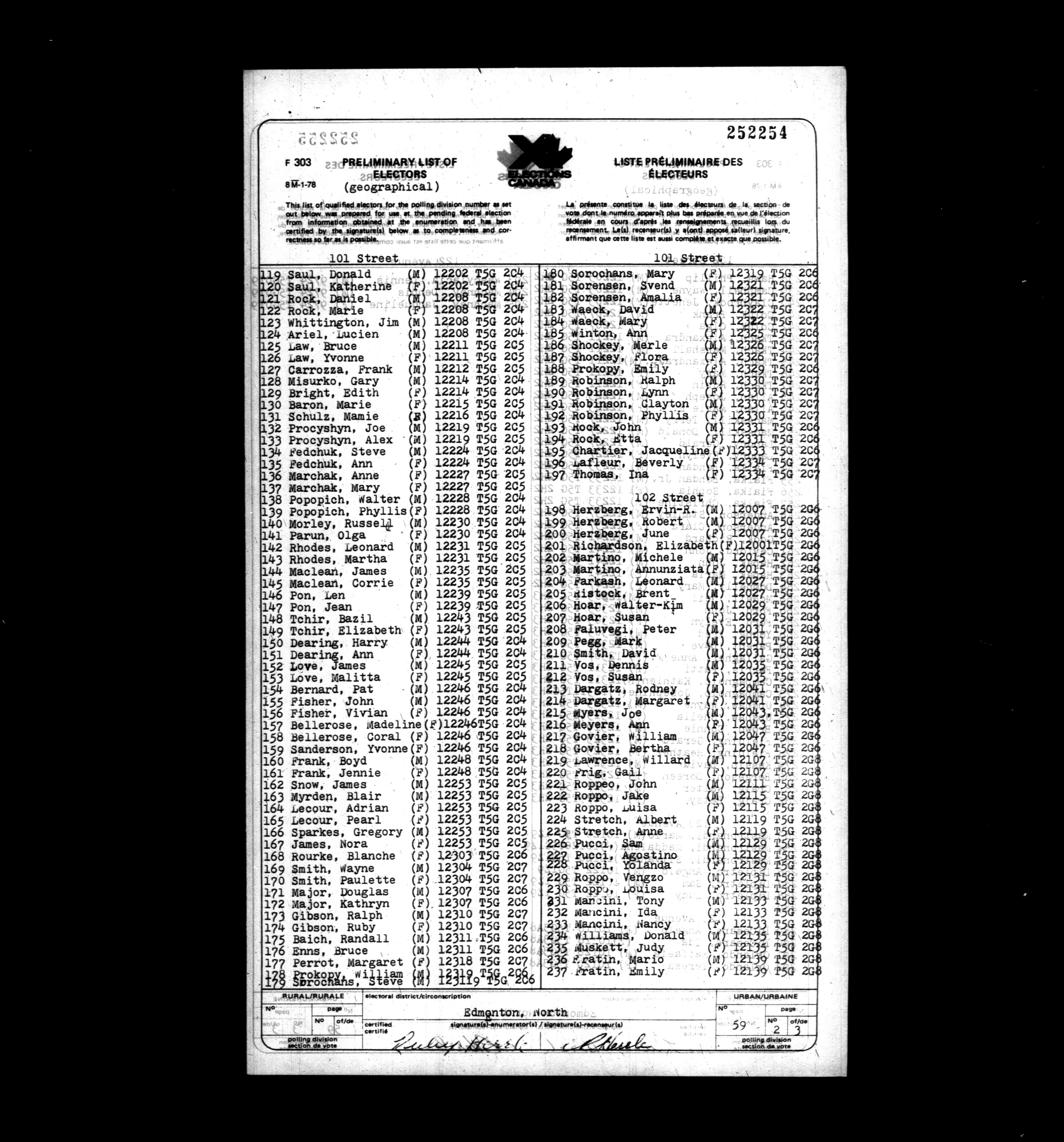 Office of the Chief Electoral Officer : Preliminary List of Electors : T-700