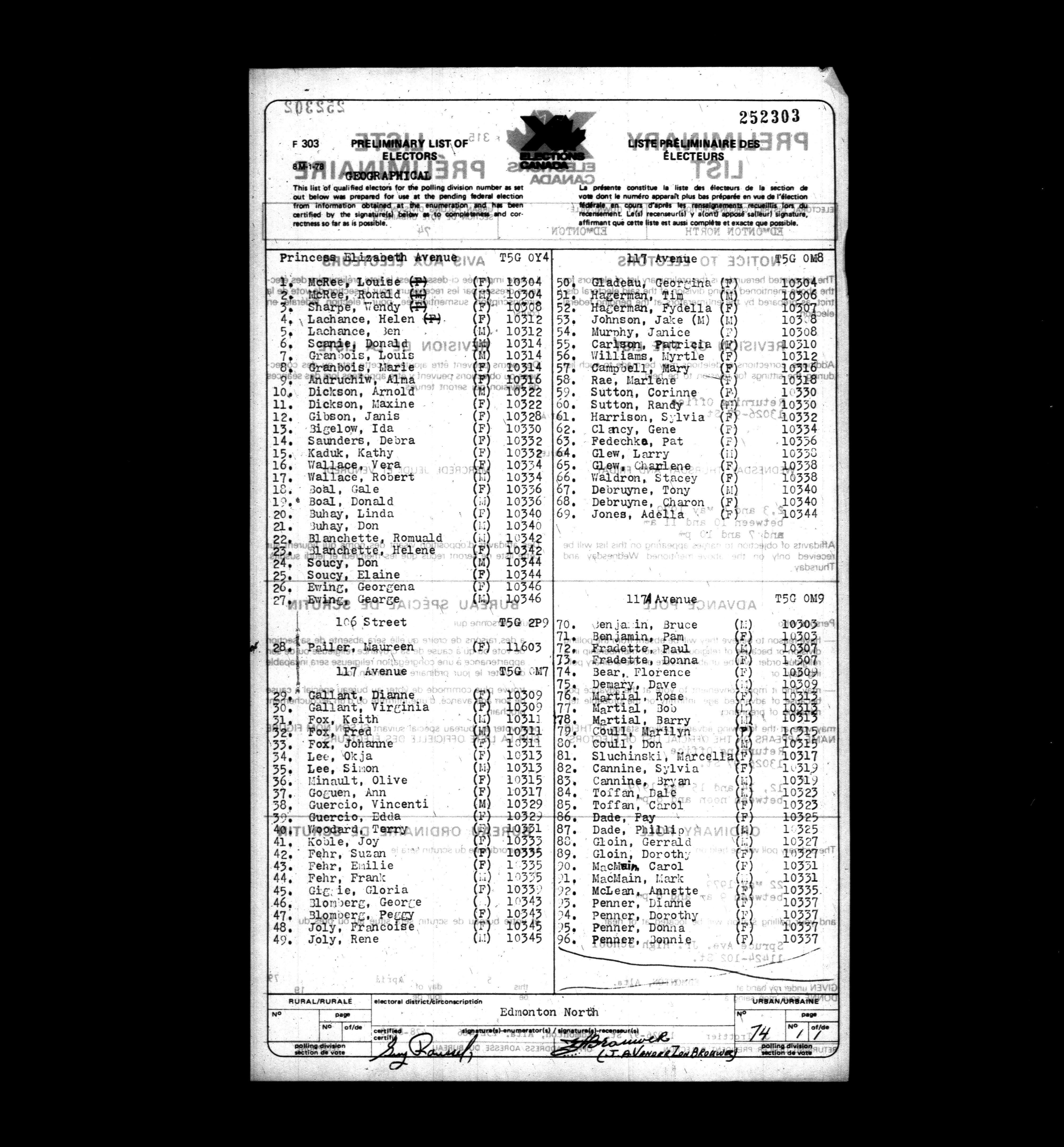 Voters' lists Alberta, 1979 - 700