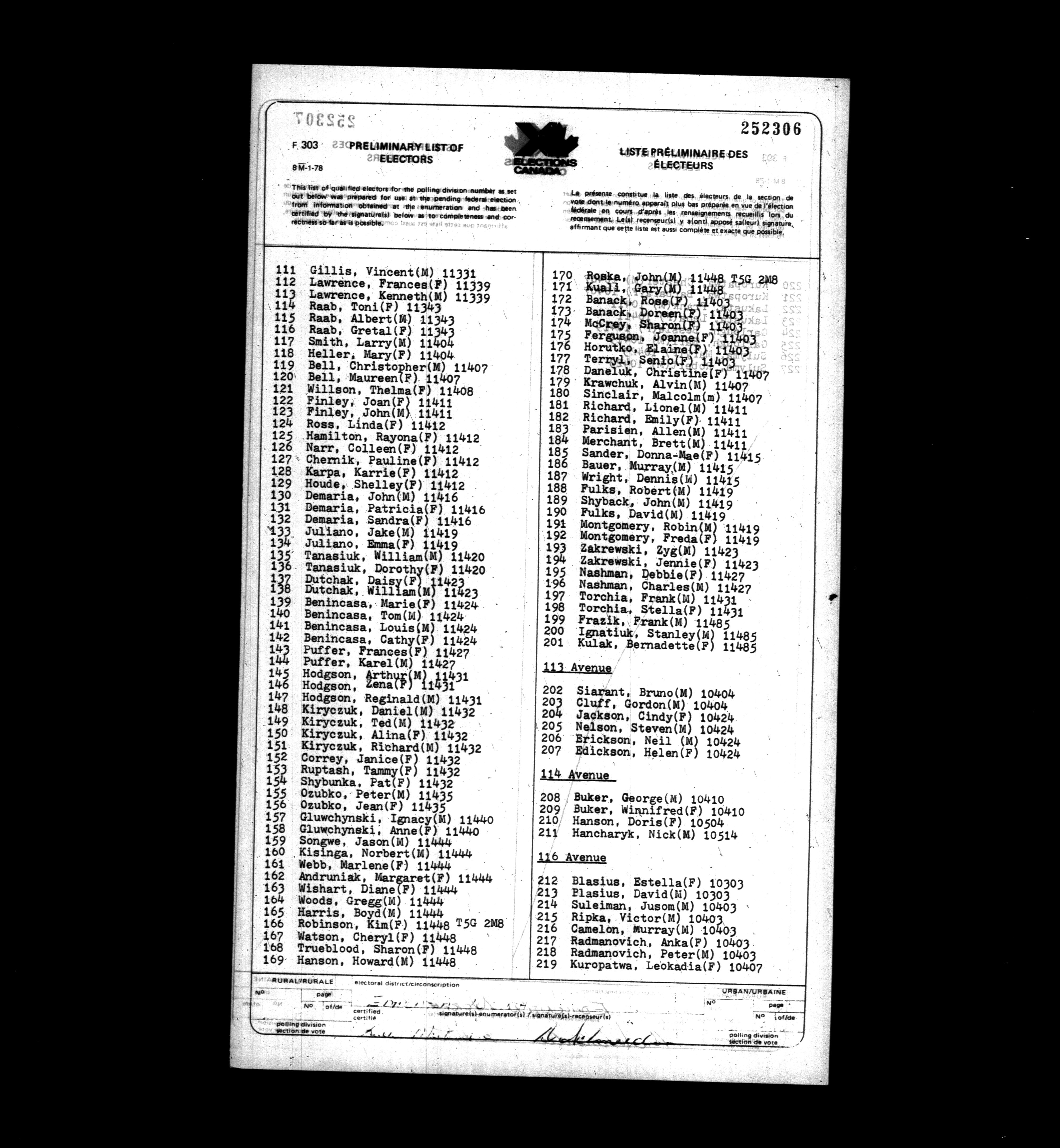 Voters' lists Alberta, 1979 - 700