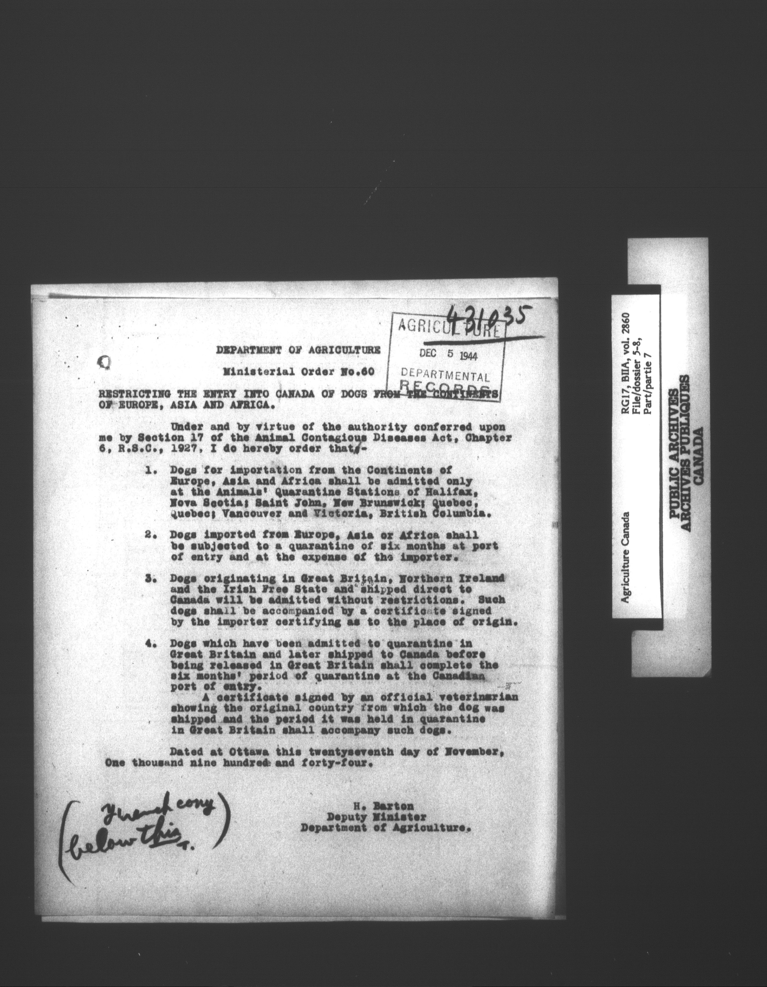 Department of Agriculture : Duplex numeric subject file classification system - 7009