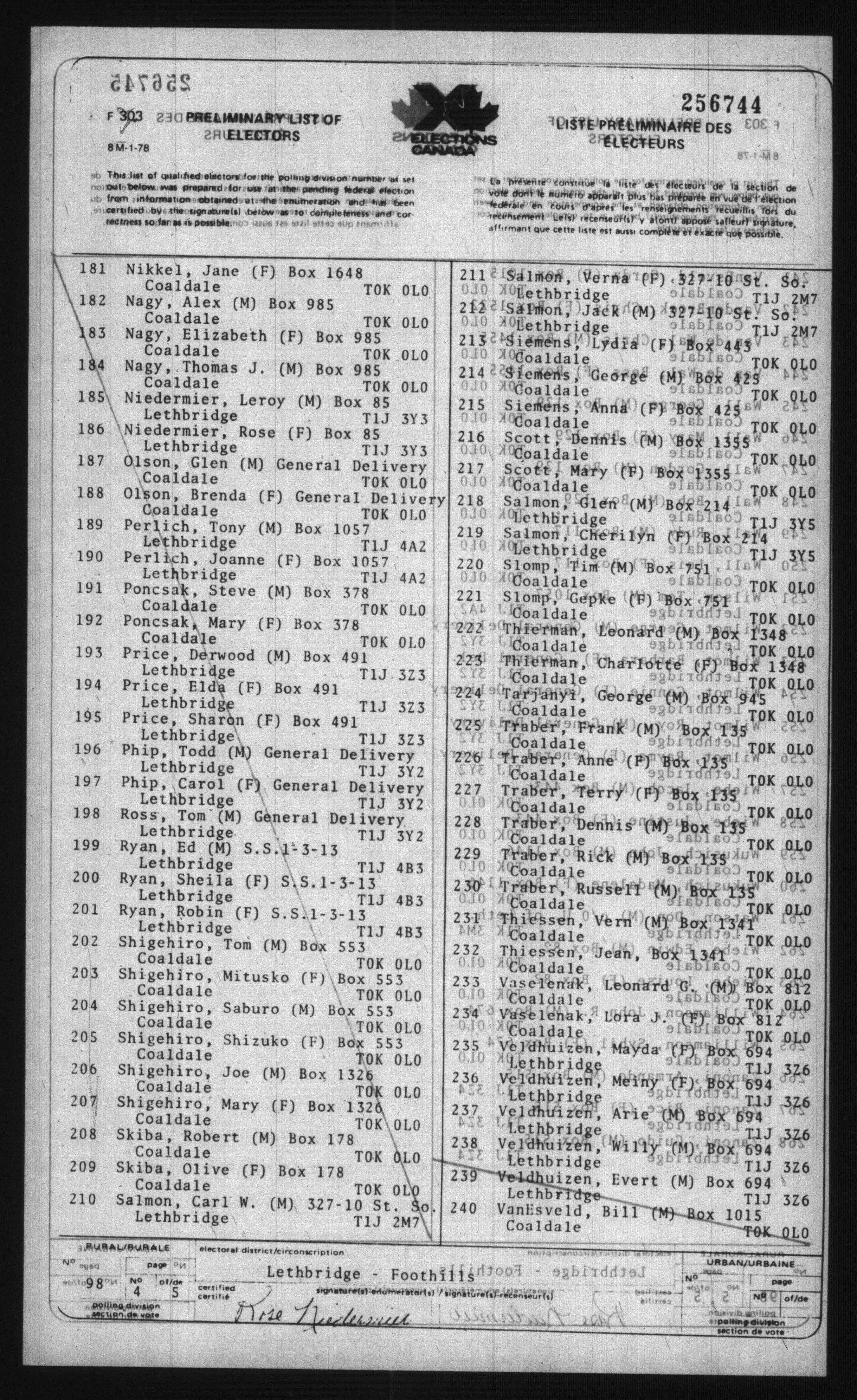 Office of the Chief Electoral Officer : Preliminary List of Electors : T-702