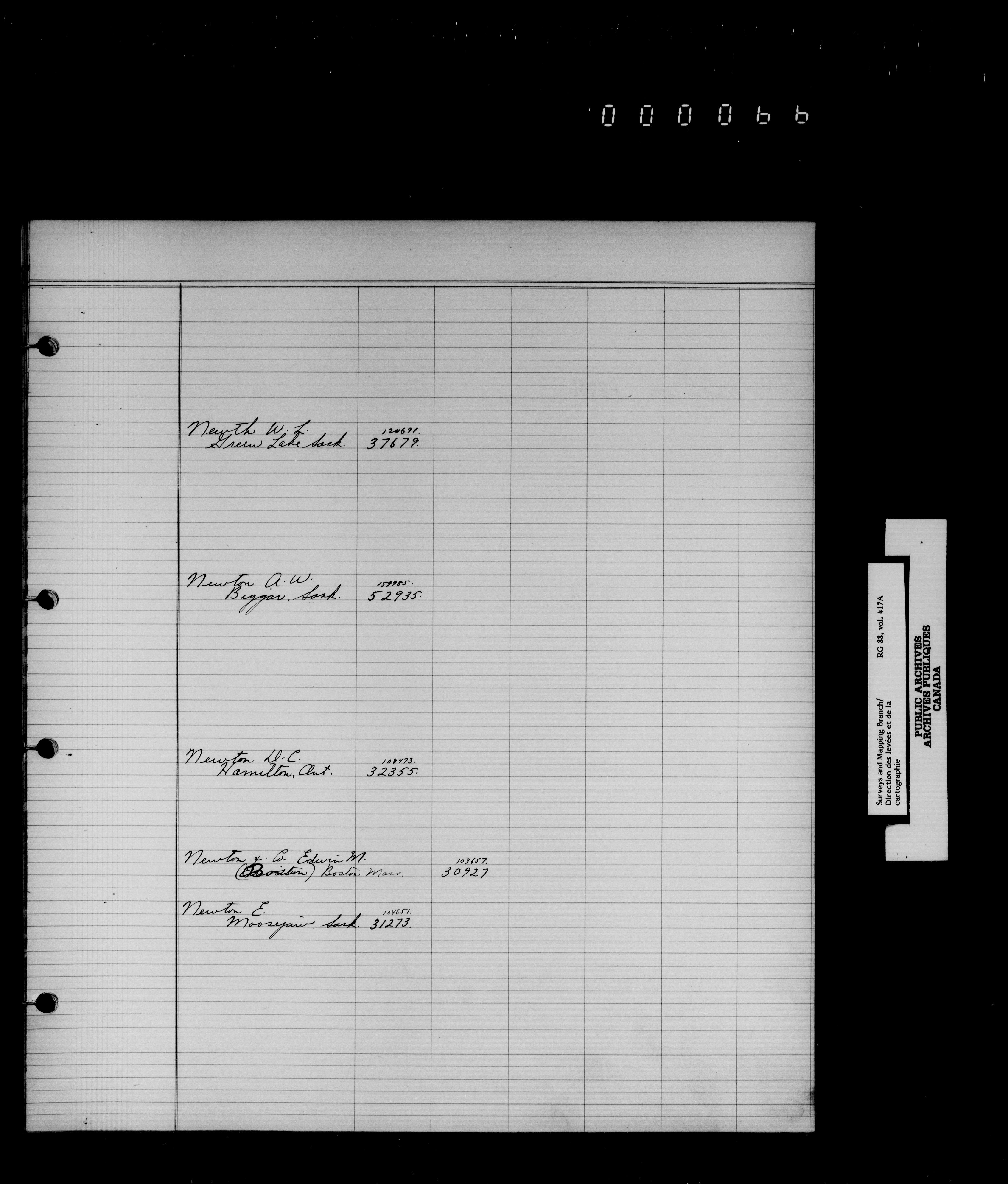 Index to the registry files of the office of the Surveyor General , 1881-1949 - 7067