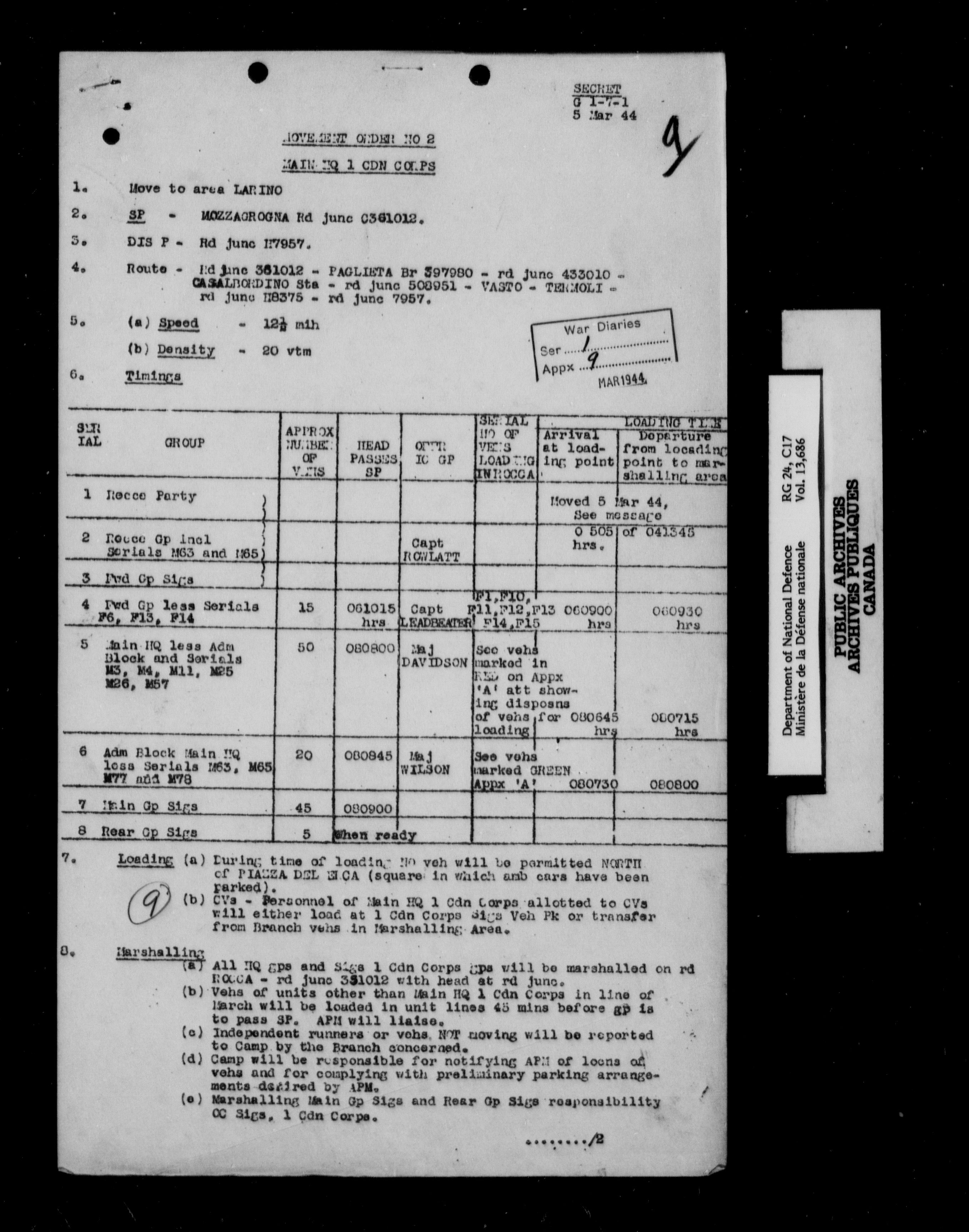 War diaries, 1939-1945 - 7113