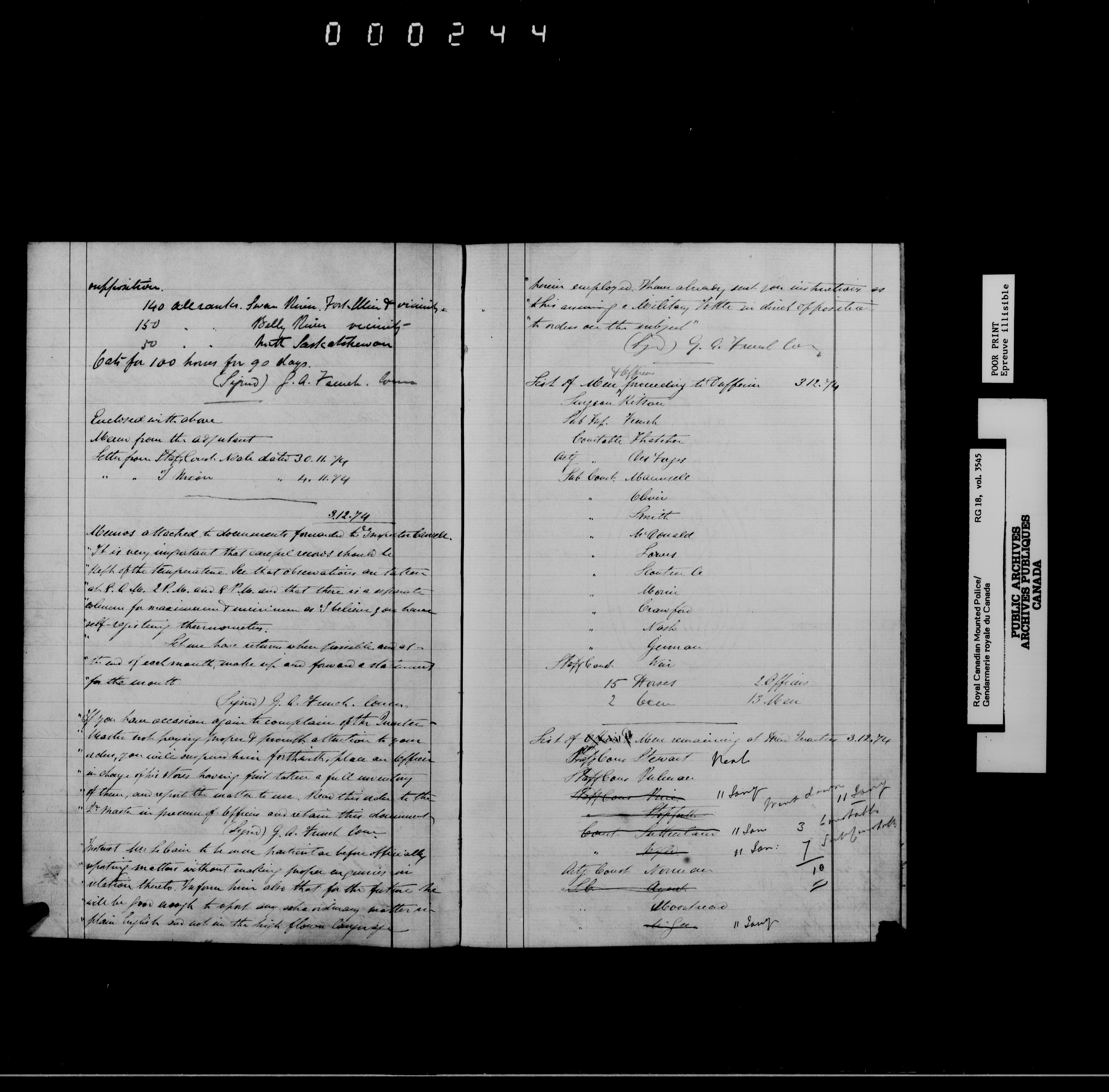 Royal Canadian Mounted Police, Office of the Comptroller : Letterbooks of Commissioner George Arthur French : T-7131