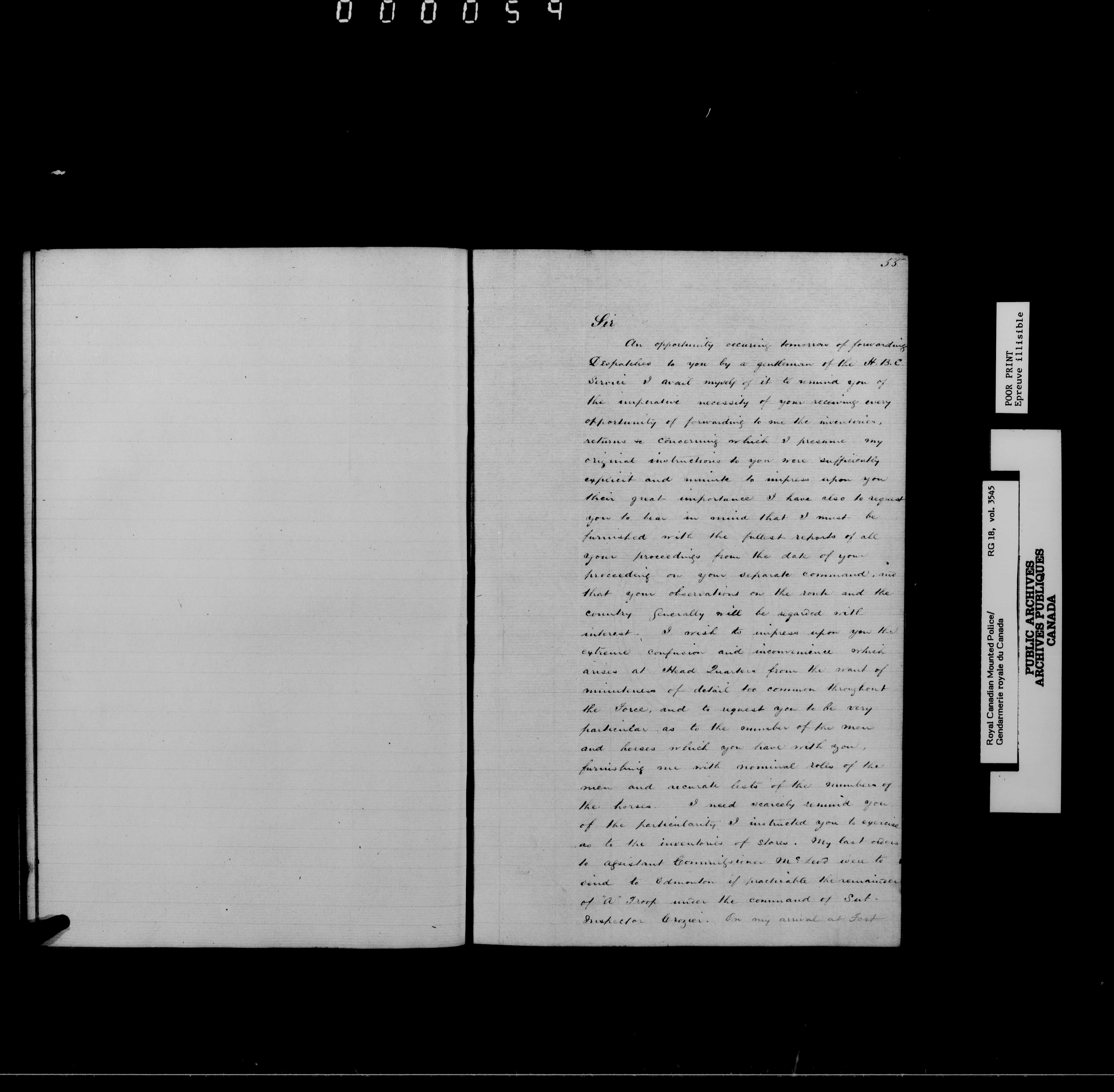 Royal Canadian Mounted Police, Office of the Comptroller : Letterbooks of Commissioner George Arthur French - 7131