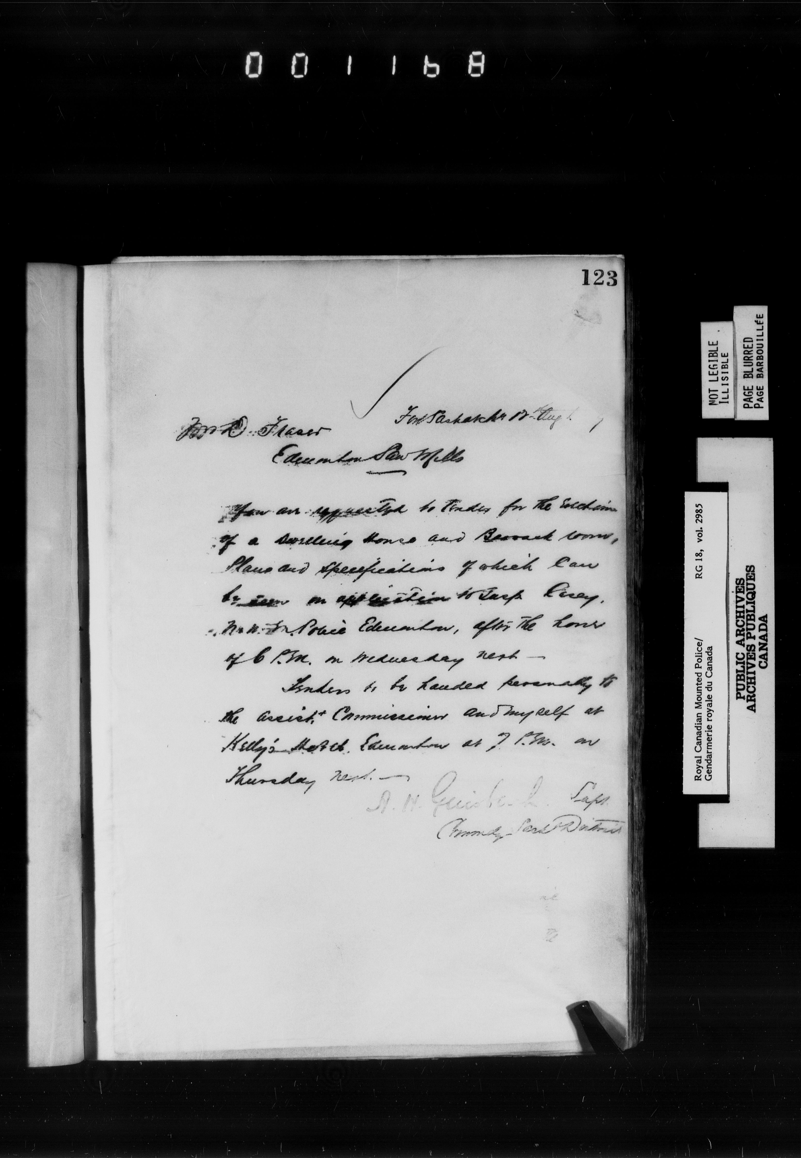 Royal Canadian Mounted Police, G Division : Letterbooks from Fort Saskatchewan : T-7137
