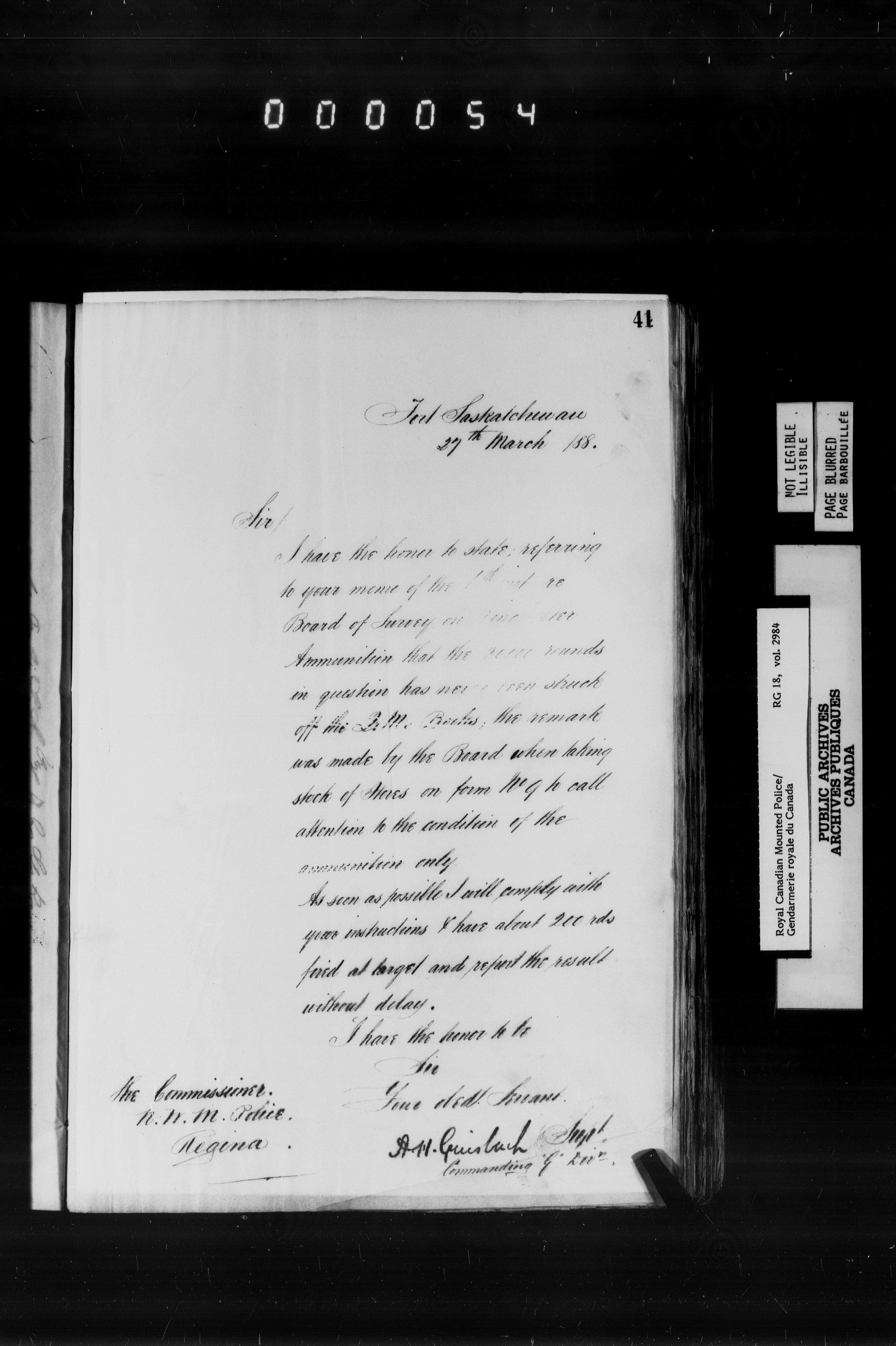 Royal Canadian Mounted Police, G Division : Letterbooks from Fort Saskatchewan : T-7137
