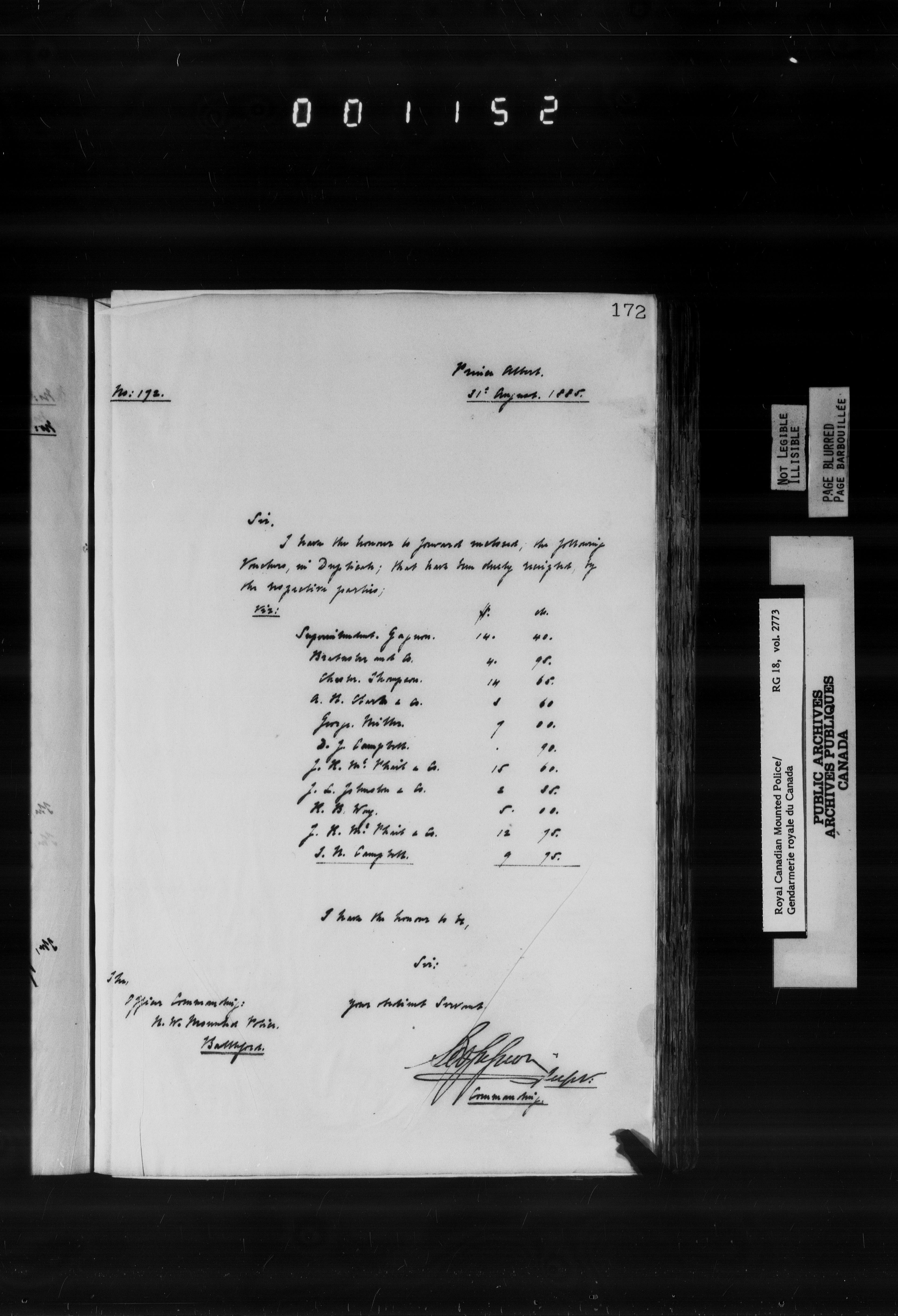 Royal Canadian Mounted Police, F Division : Letterbooks of the Commanding Officer, 1884-1903 - 7140