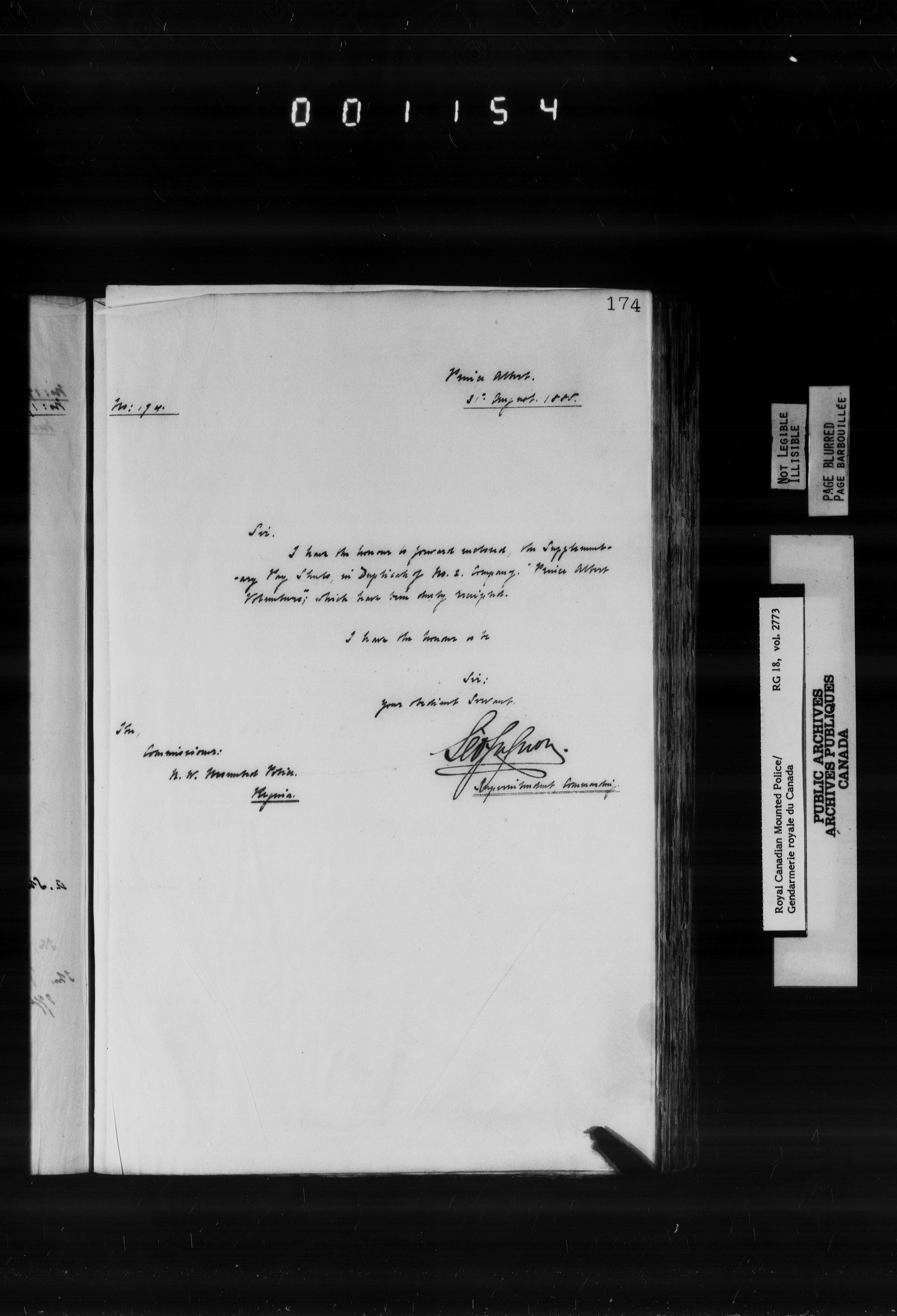 Royal Canadian Mounted Police, F Division : Letterbooks of the Commanding Officer, 1884-1903 - 7140