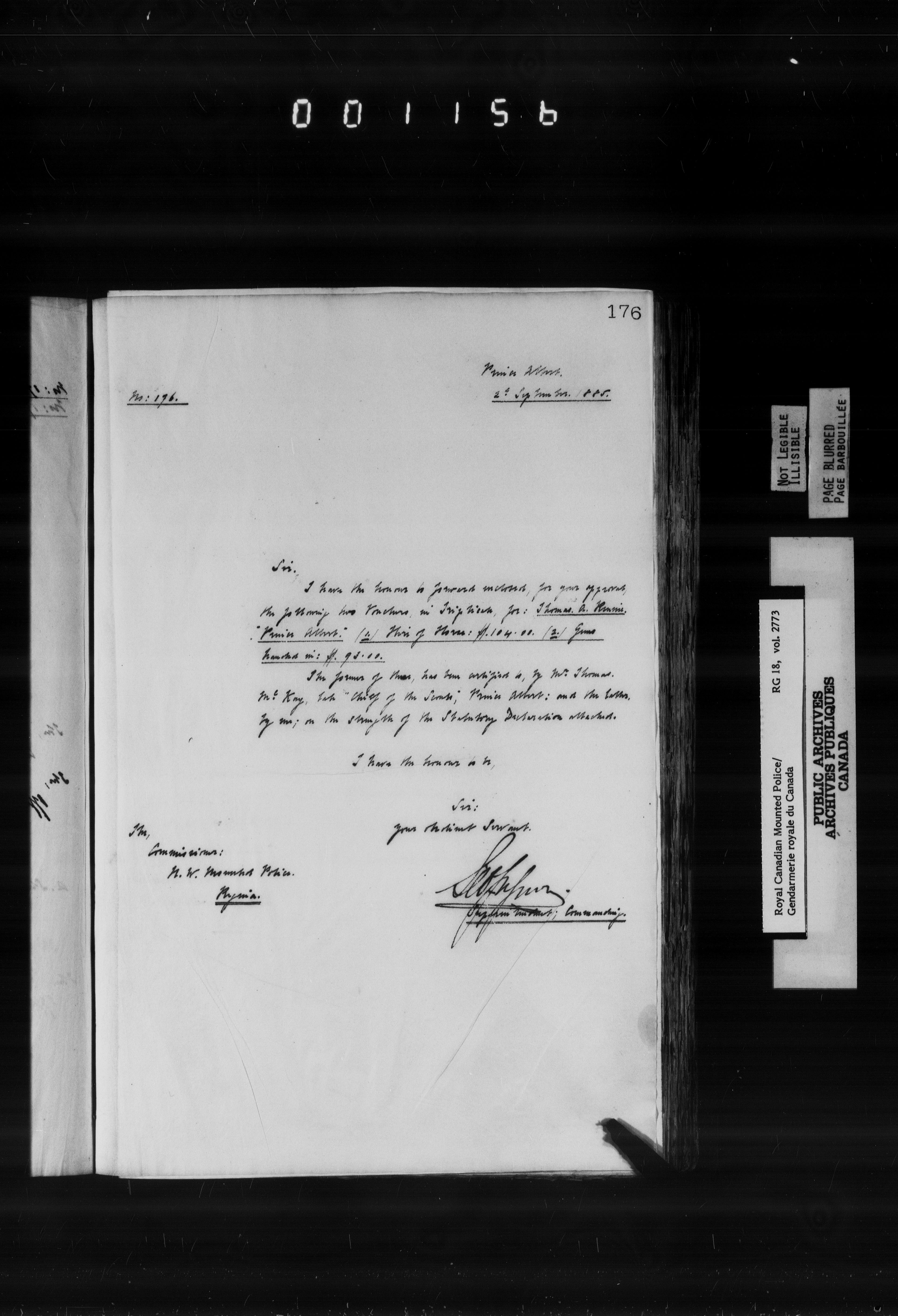 Royal Canadian Mounted Police, F Division : Letterbooks of the Commanding Officer, 1884-1903 - 7140