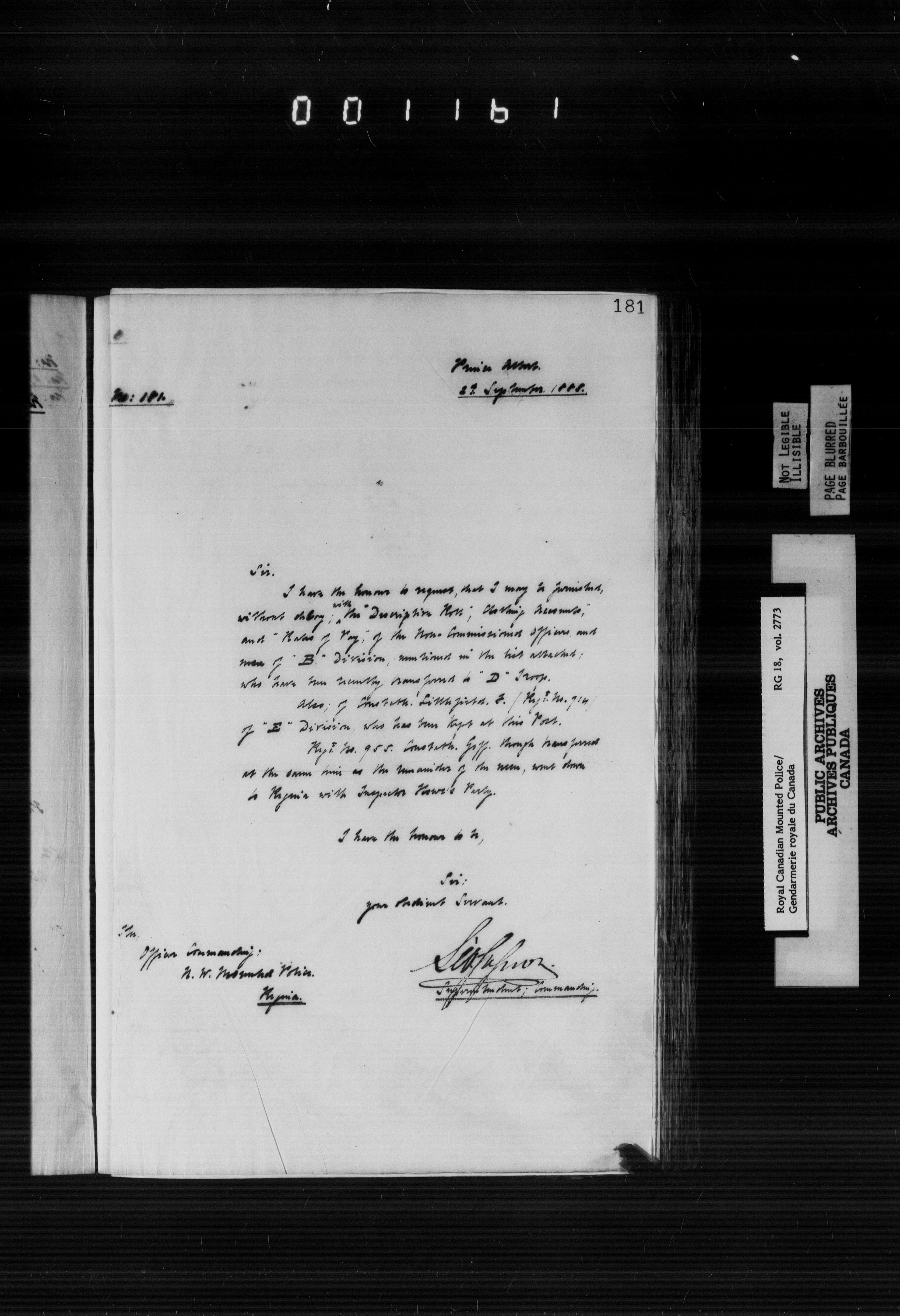 Royal Canadian Mounted Police, F Division : Letterbooks of the Commanding Officer, 1884-1903 - 7140
