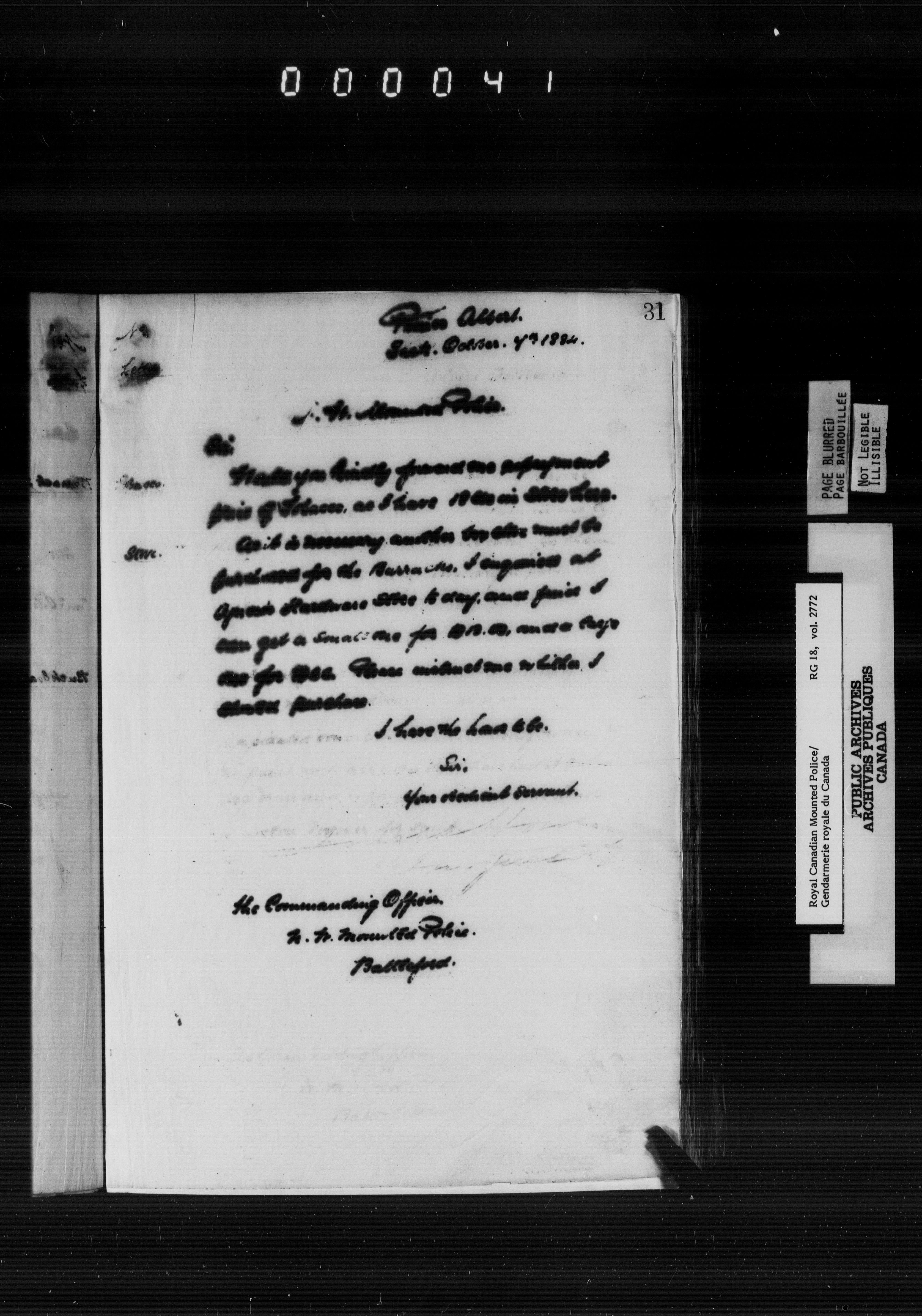 Royal Canadian Mounted Police, F Division : Letterbooks of the Commanding Officer, 1884-1903 - 7140