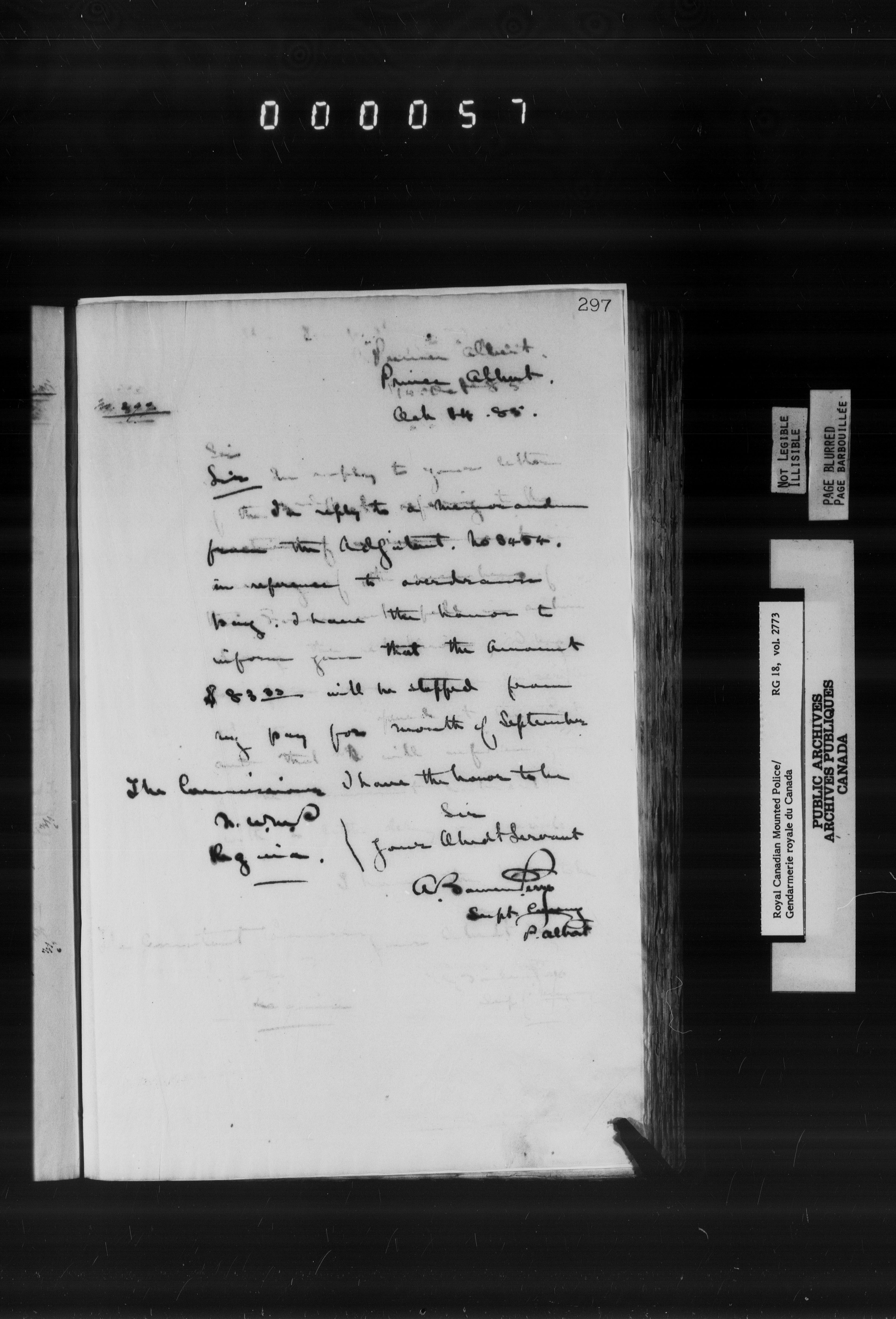 Royal Canadian Mounted Police, F Division : Letterbooks of the Commanding Officer, 1884-1903 - 7141