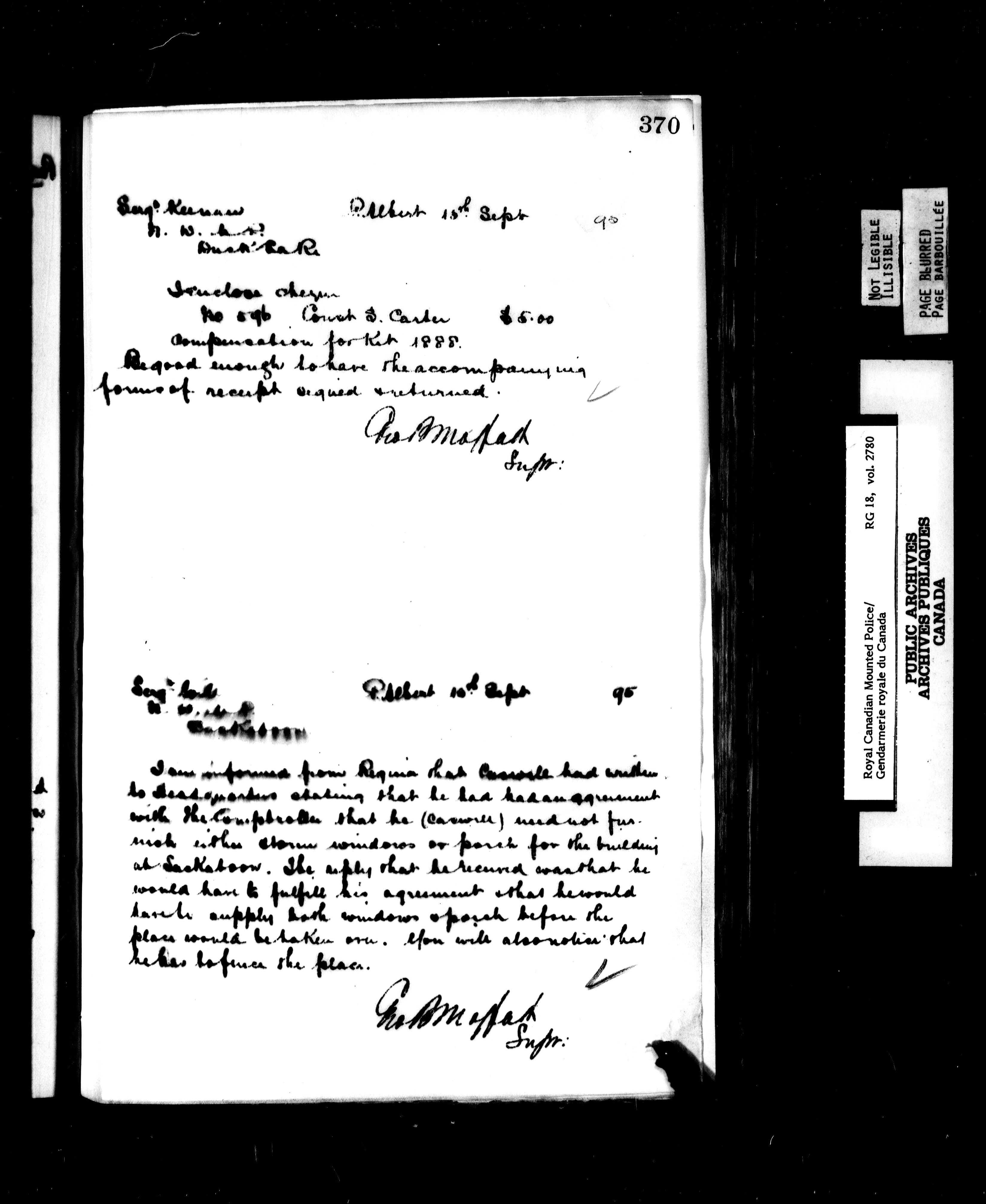 Royal Canadian Mounted Police, F Division : Letterbooks of the Commanding Officer, 1884-1903 - 7144