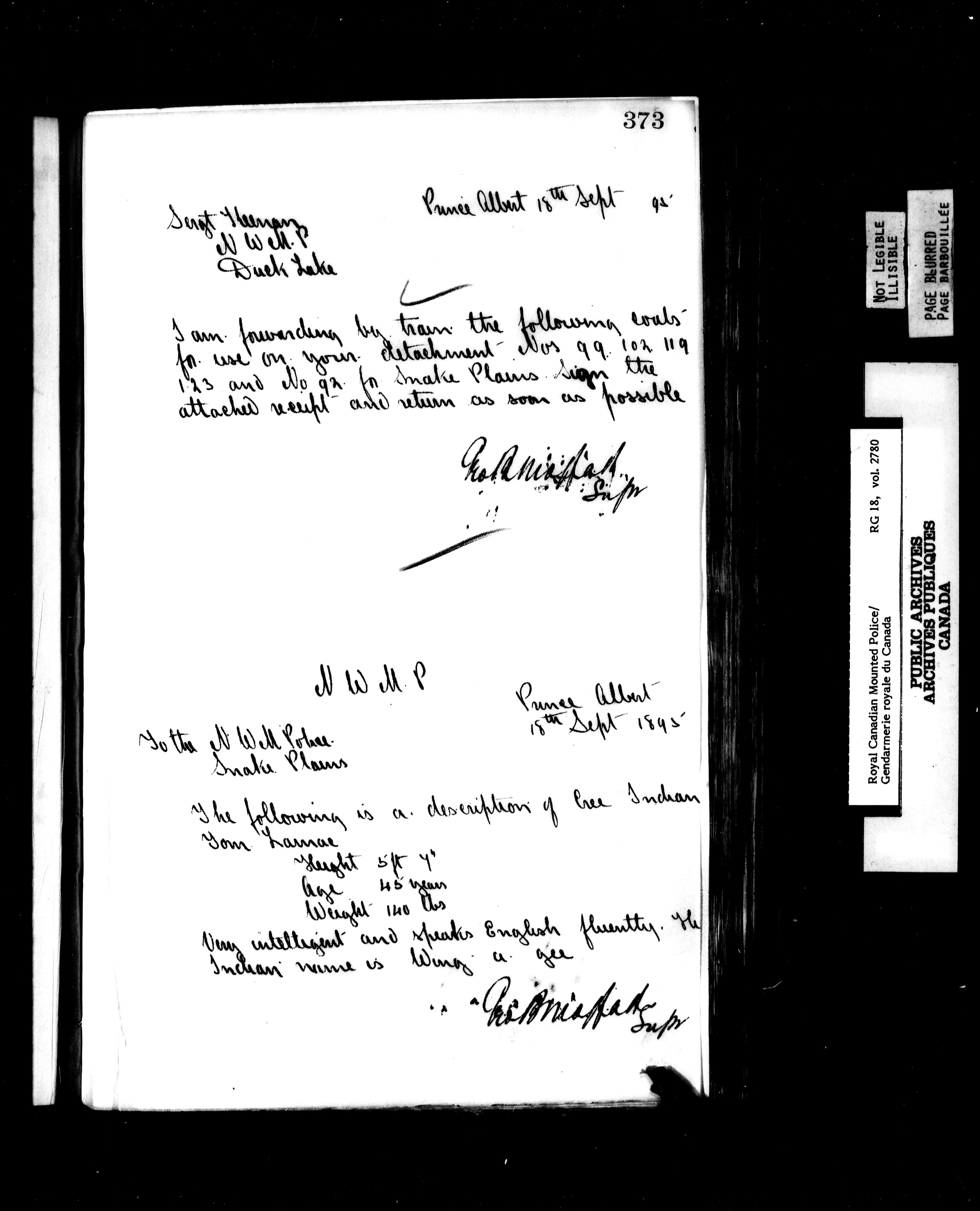 Royal Canadian Mounted Police, F Division : Letterbooks of the Commanding Officer, 1884-1903 - 7144