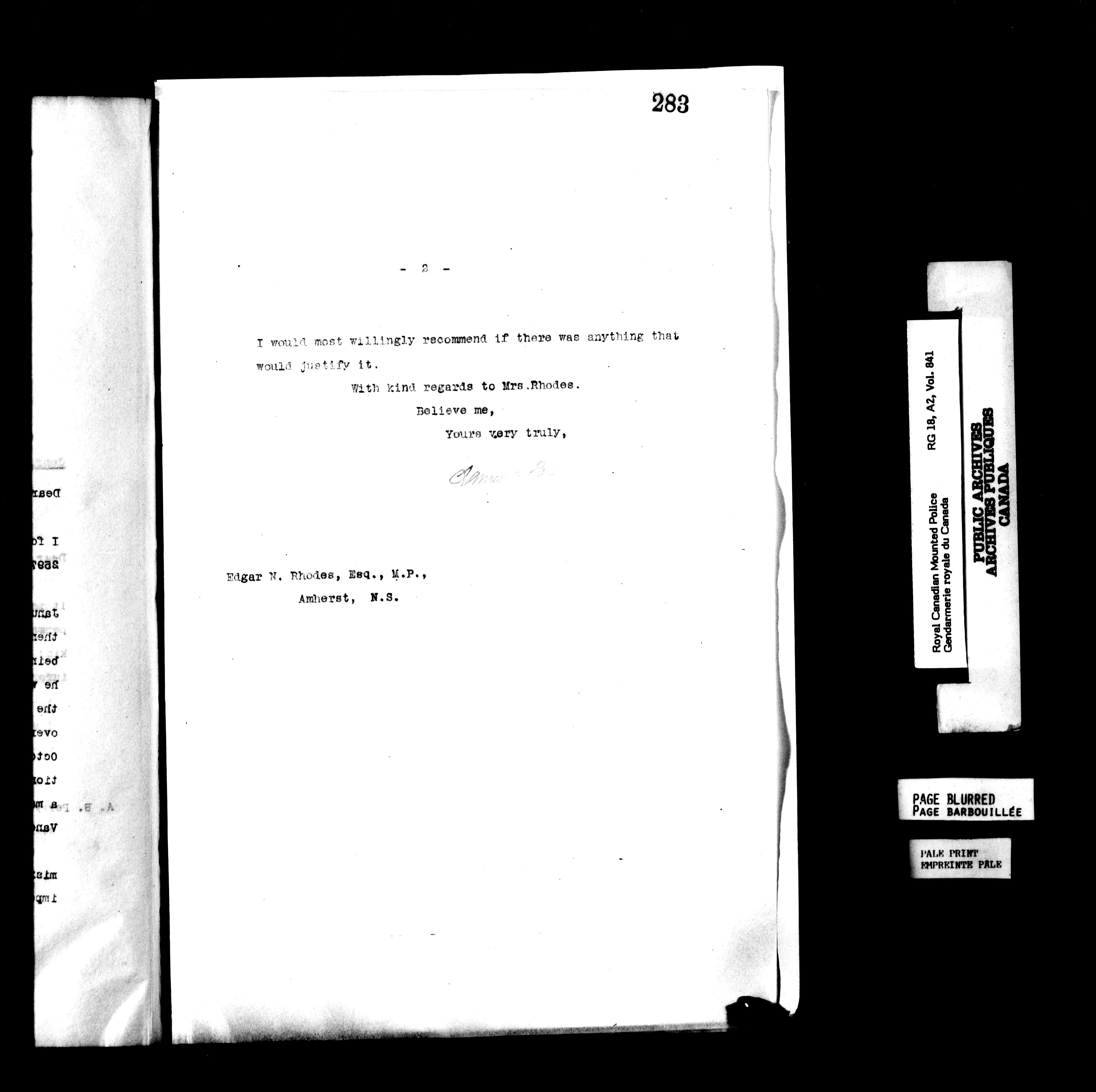 Royal Canadian Mounted Police, Office of the Comptroller : Semi-official correspondence (1903-1919) - 7147