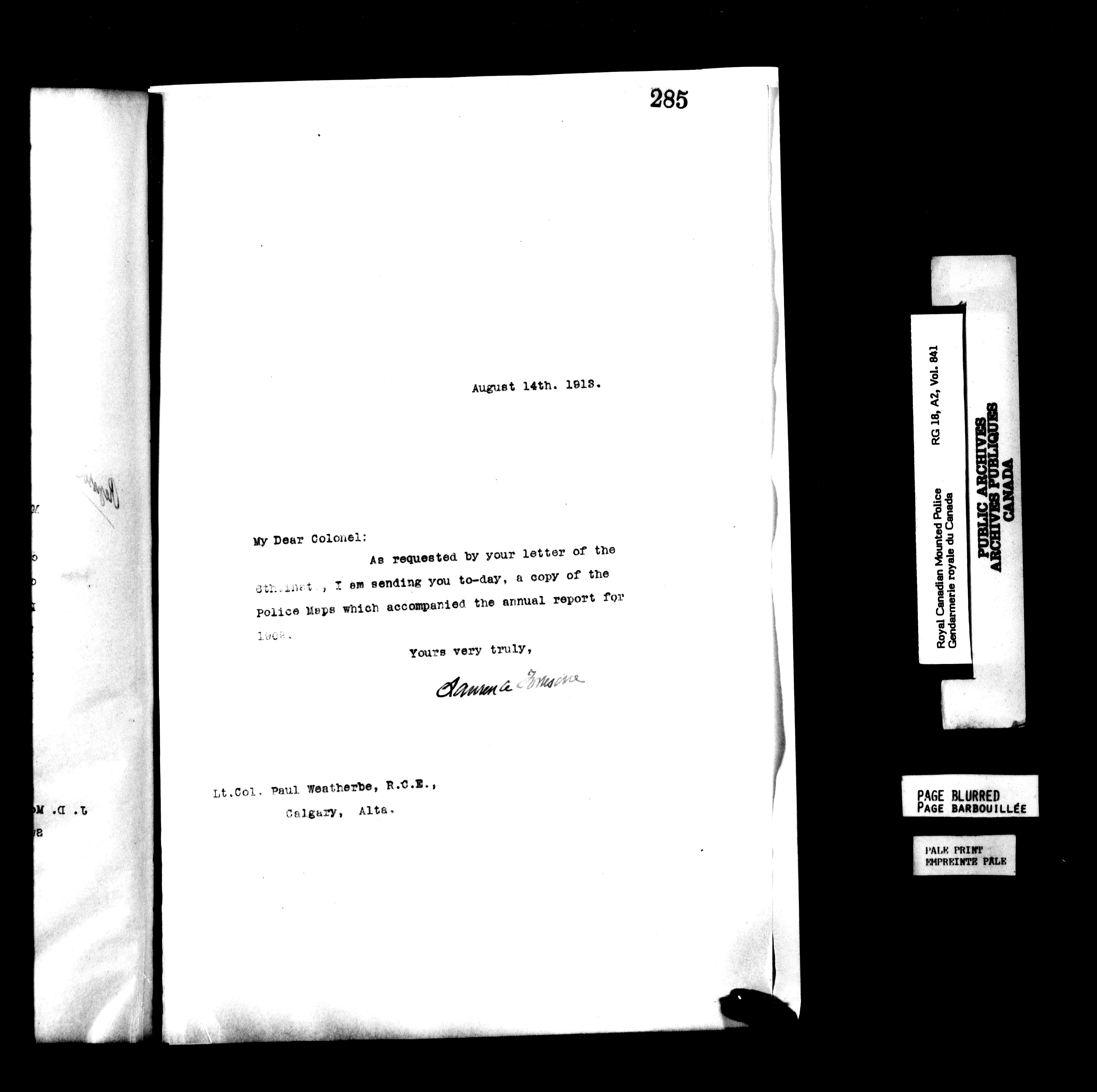 Royal Canadian Mounted Police, Office of the Comptroller : Semi-official correspondence (1903-1919) - 7147