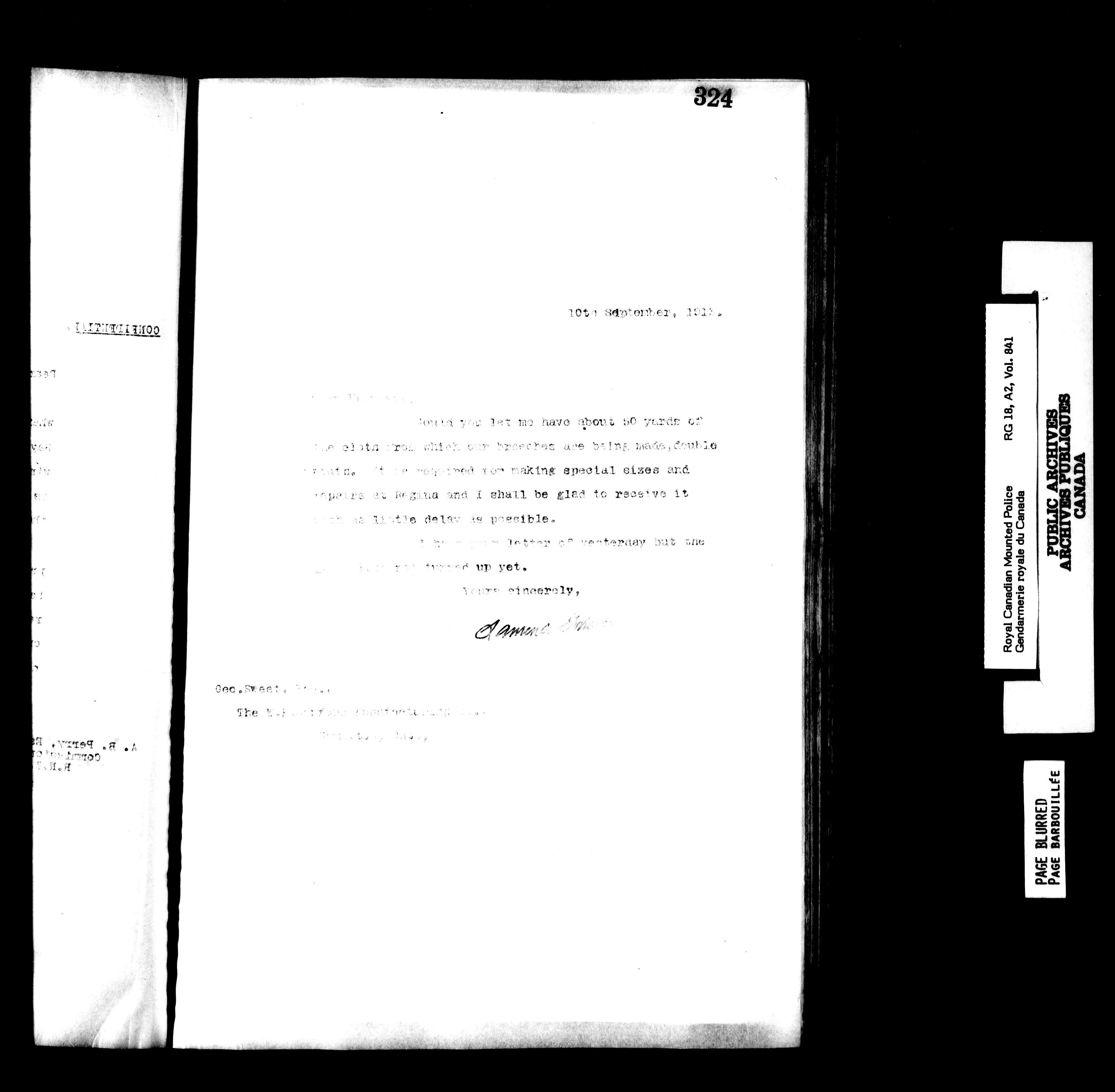 Royal Canadian Mounted Police, Office of the Comptroller : Semi-official correspondence (1903-1919) - 7147