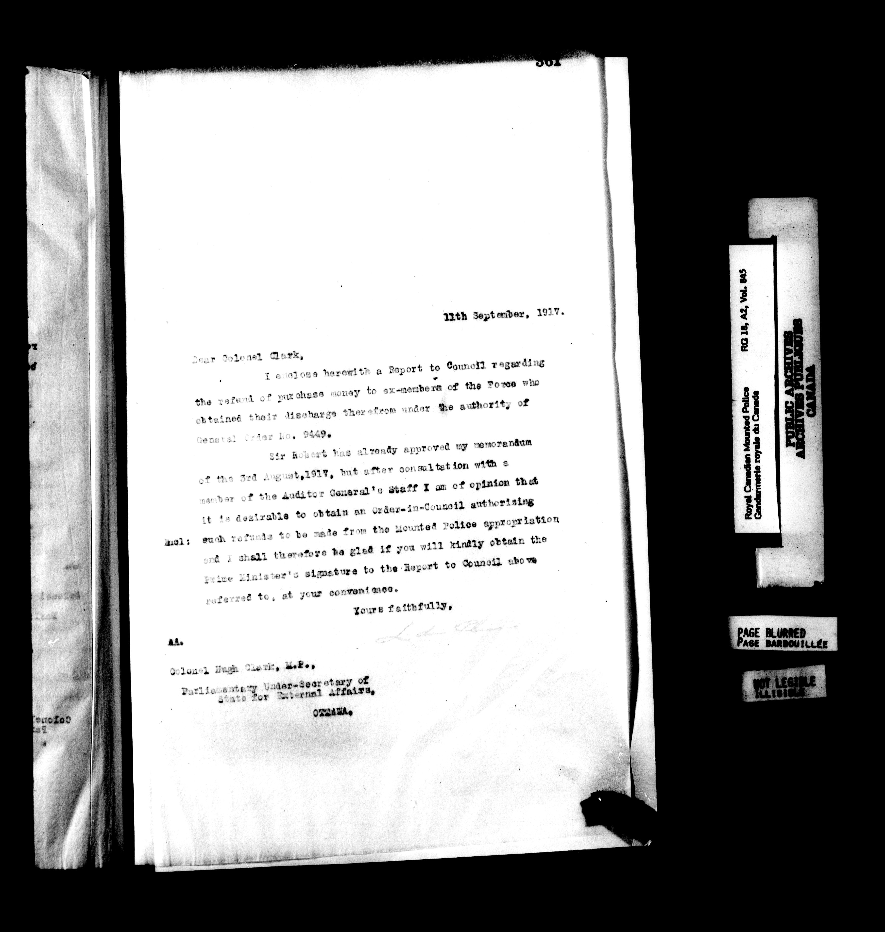Royal Canadian Mounted Police, Office of the Comptroller : Semi-official correspondence (1903-1919) - 7148