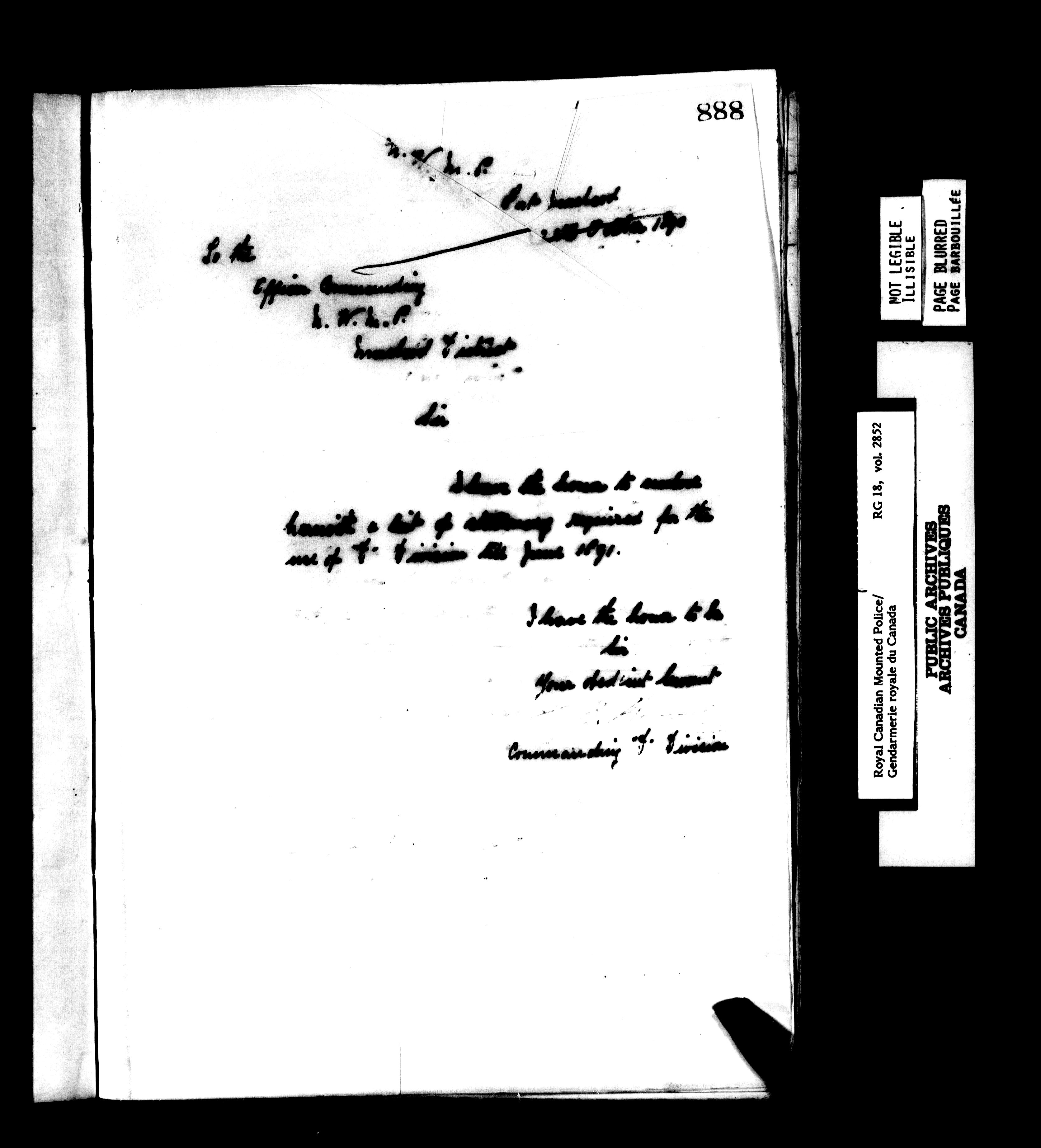 Royal Canadian Mounted Police : D Division letterbooks, 1885-1900 - 7152