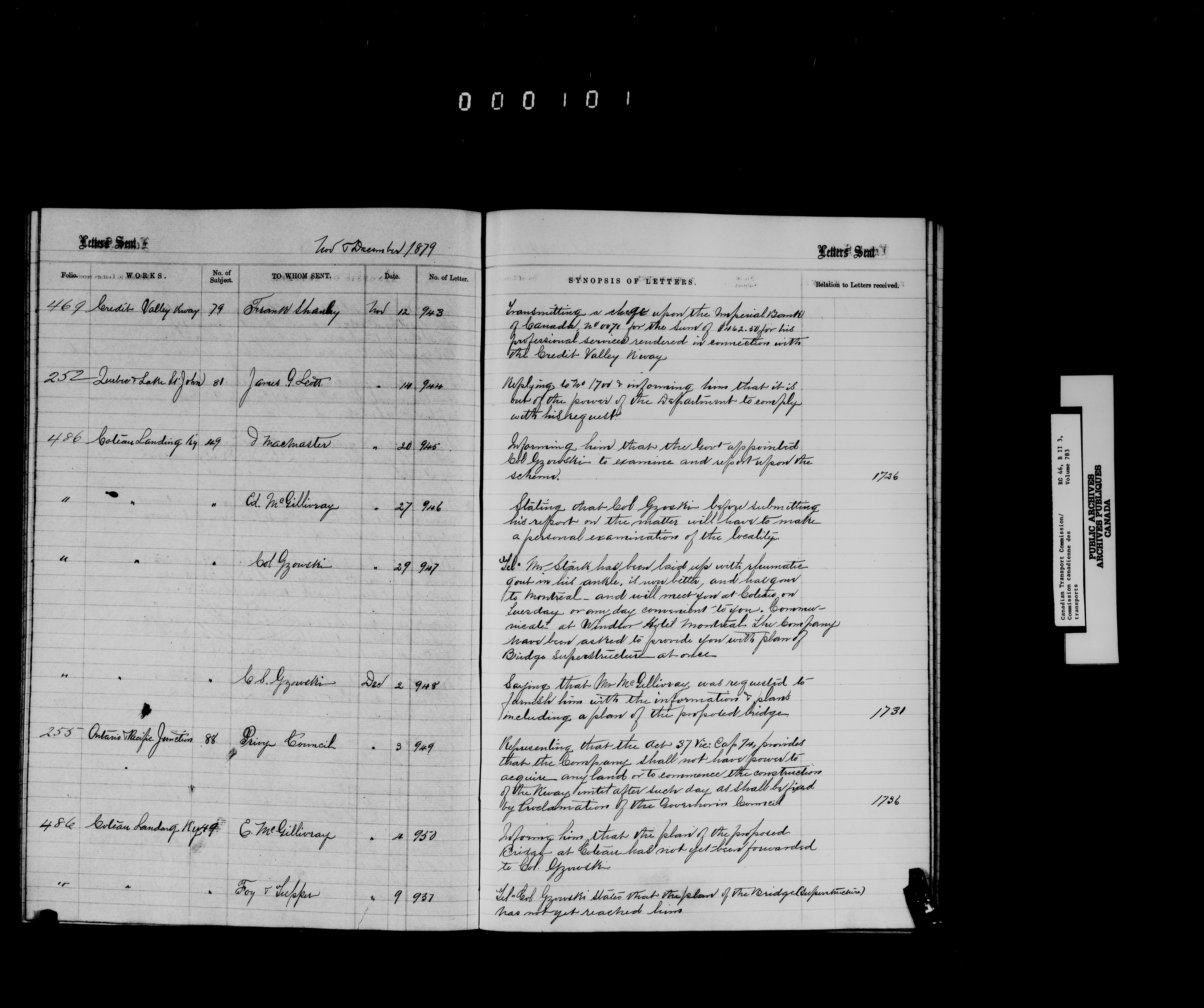 Railway Committee of the Privy Council : Registers of letters sent (1867-1893, 1903-1904) - 7164