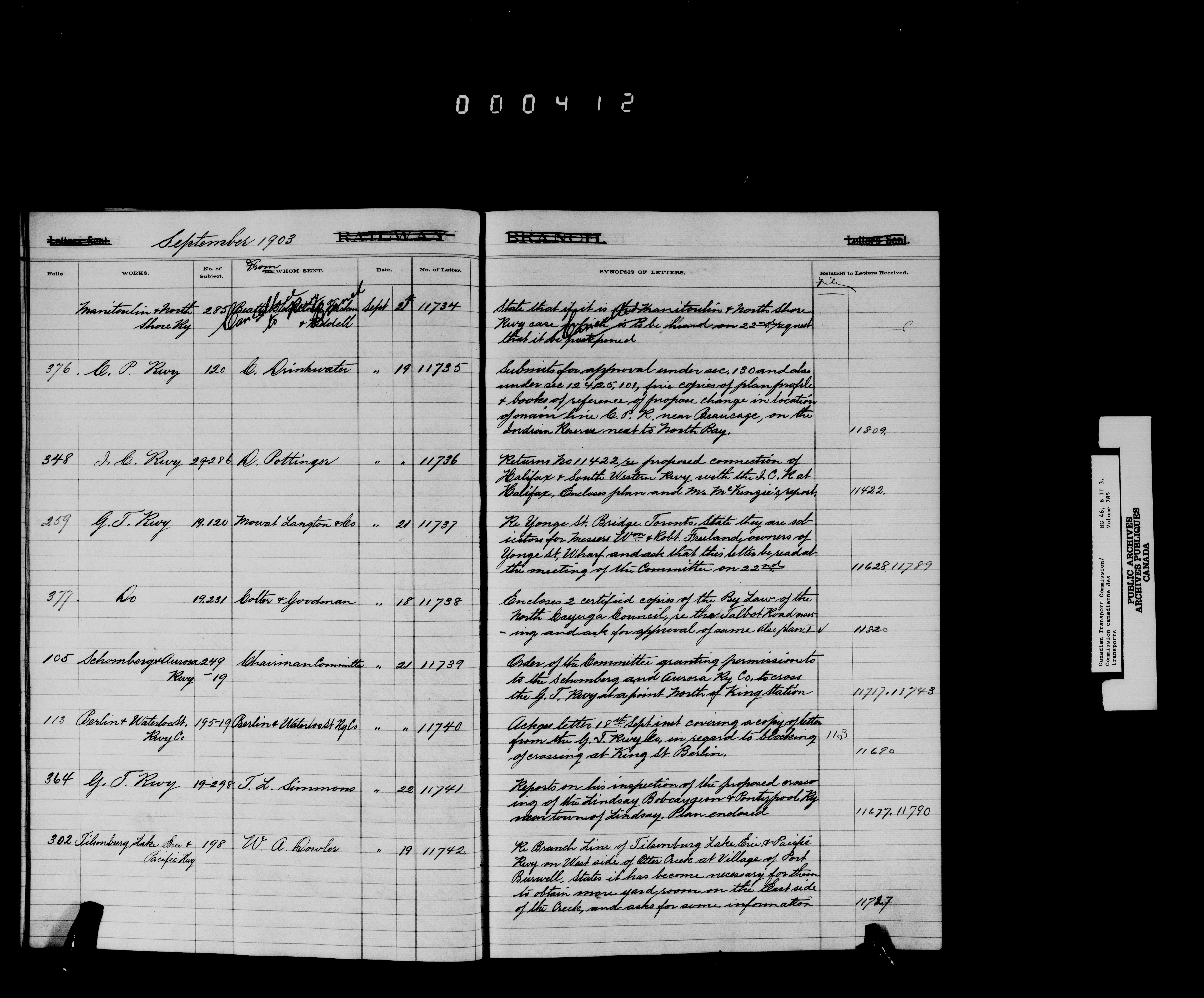 Railway Committee of the Privy Council : Registers of letters sent (1867-1893, 1903-1904) - 7164