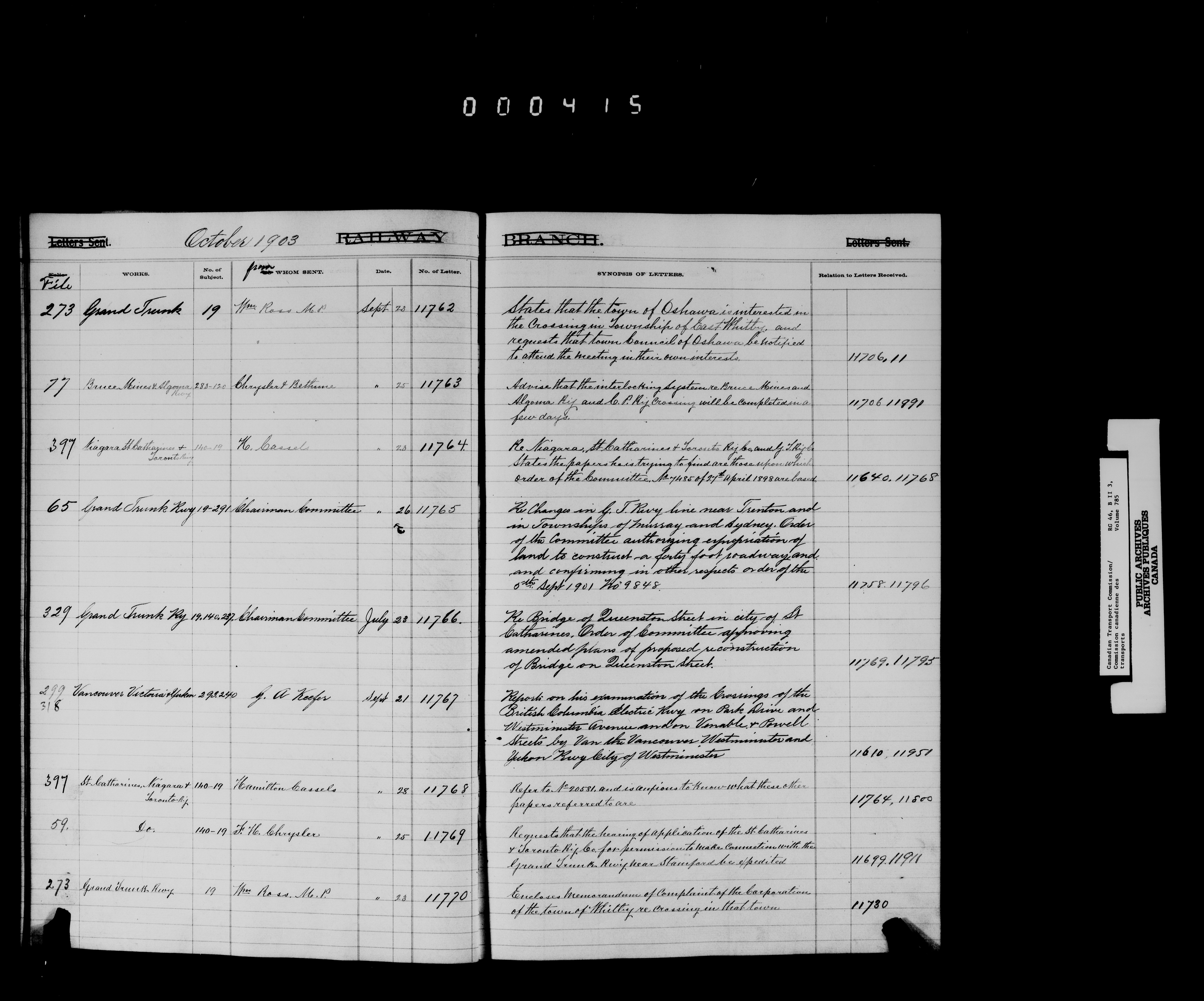 Railway Committee of the Privy Council : Registers of letters sent (1867-1893, 1903-1904) - 7164