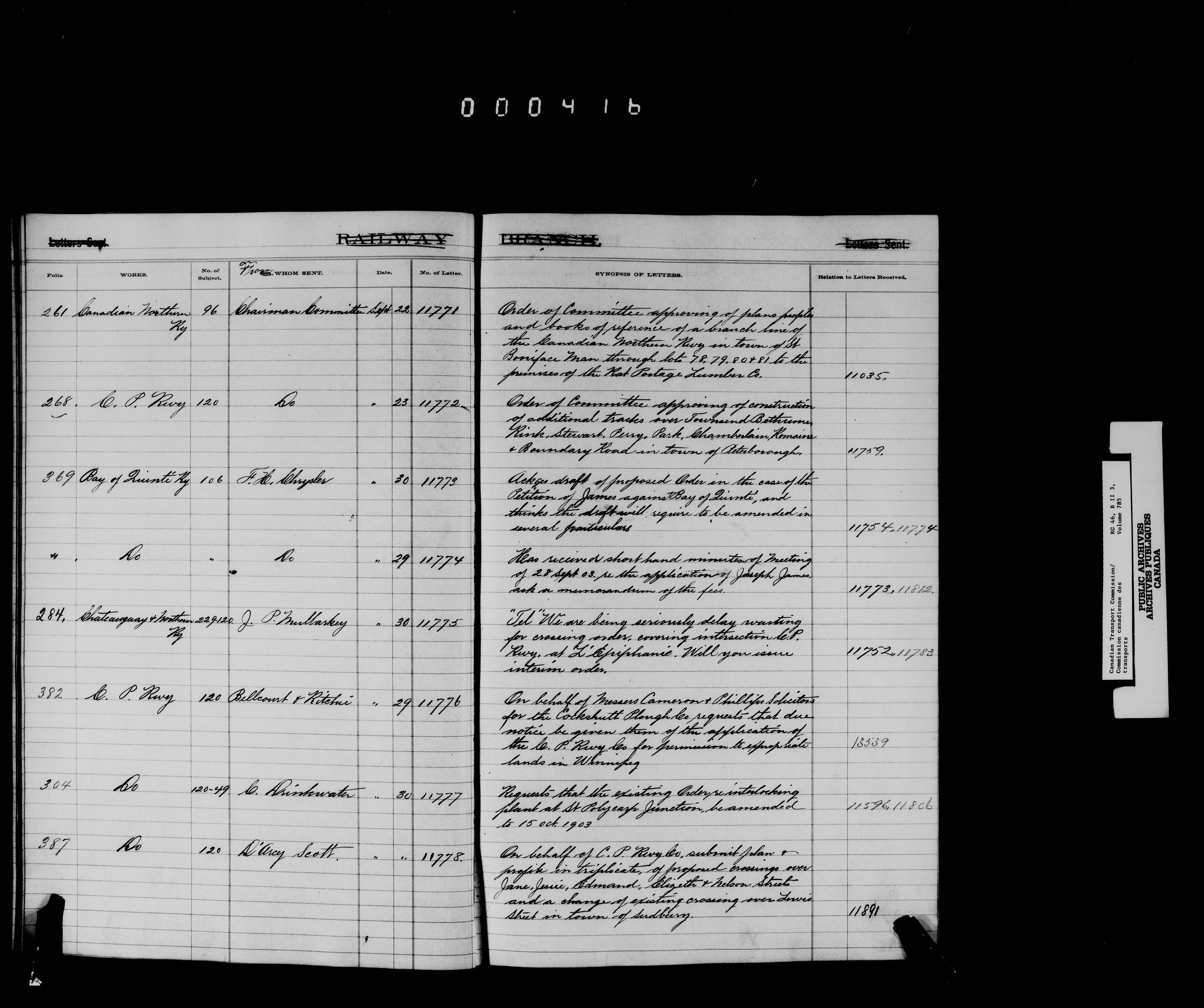 Railway Committee of the Privy Council : Registers of letters sent (1867-1893, 1903-1904) - 7164