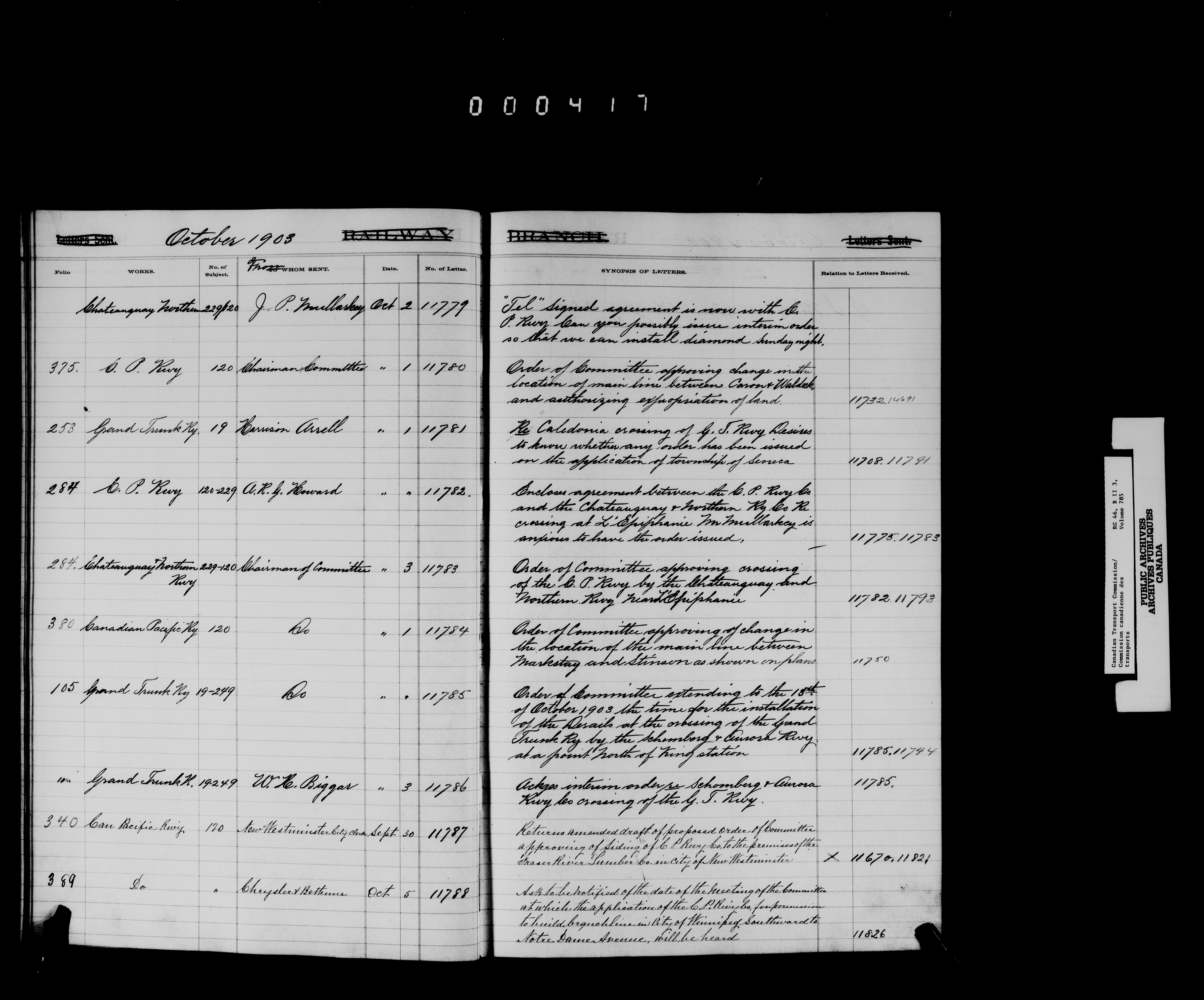 Railway Committee of the Privy Council : Registers of letters sent (1867-1893, 1903-1904) - 7164