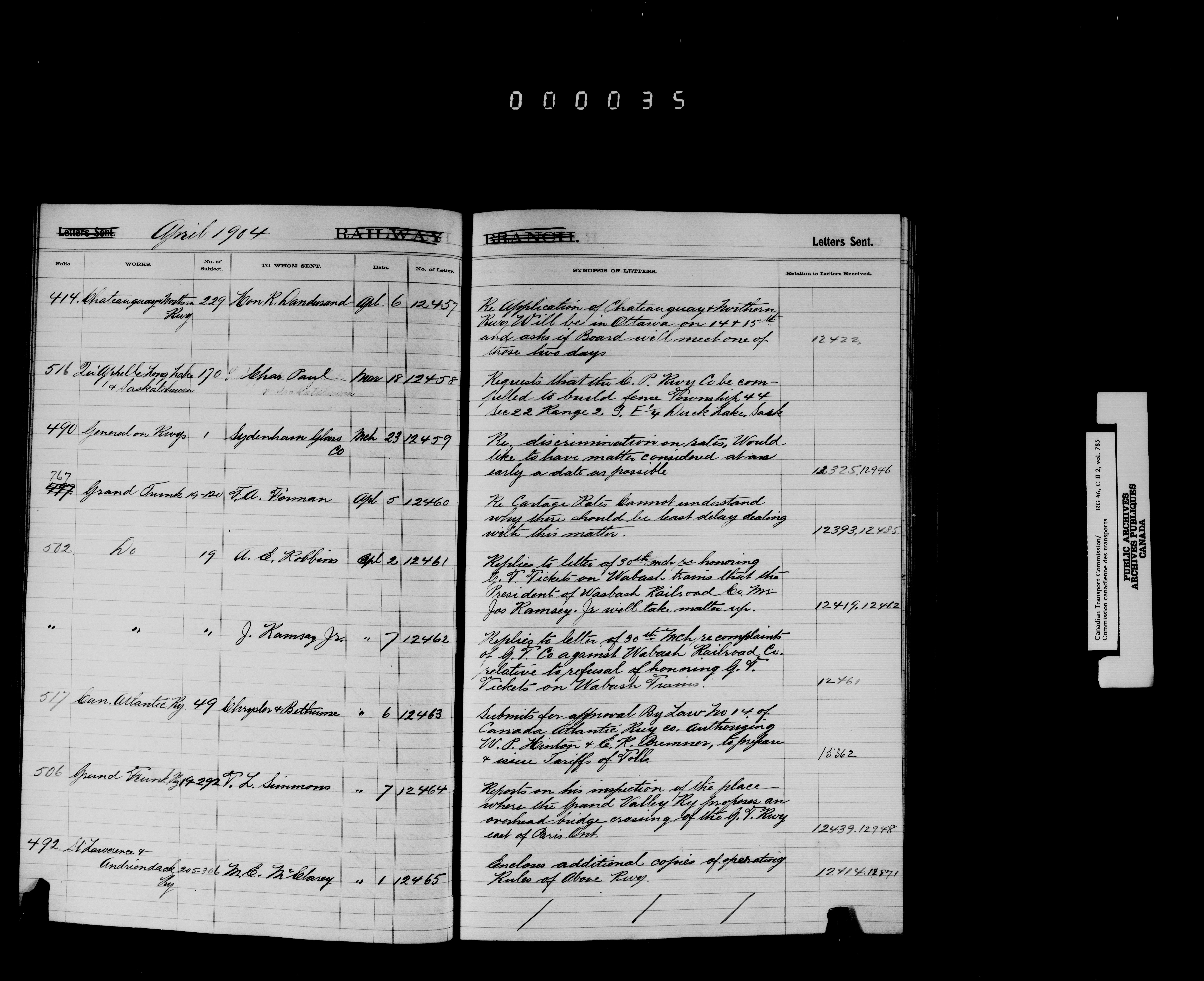 Railway Committee of the Privy Council : Registers of letters sent, 1904-1905 - 7166