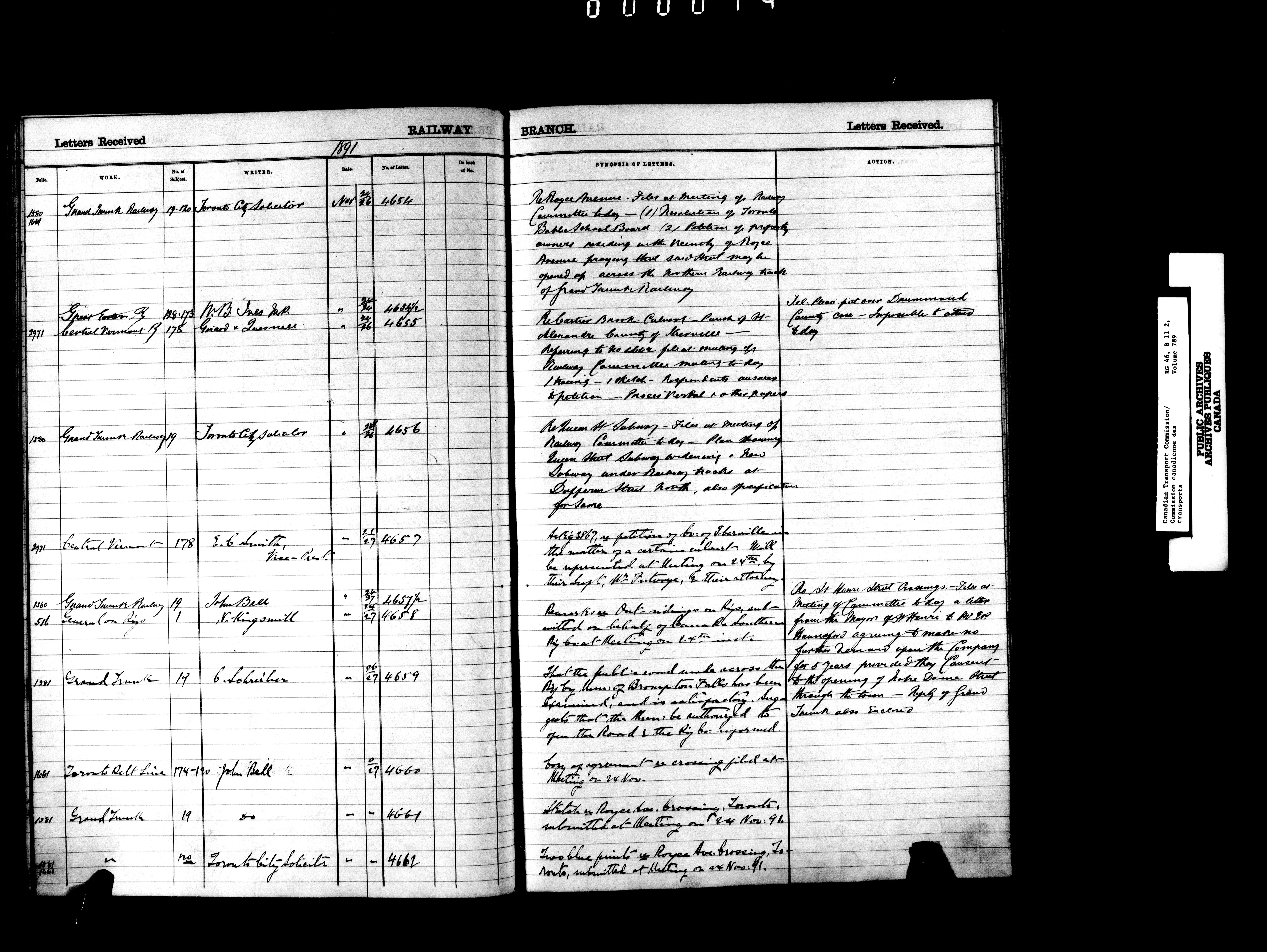 Railway Committee of the Privy Council : Registers of letters received, 1867-1903 - 7199