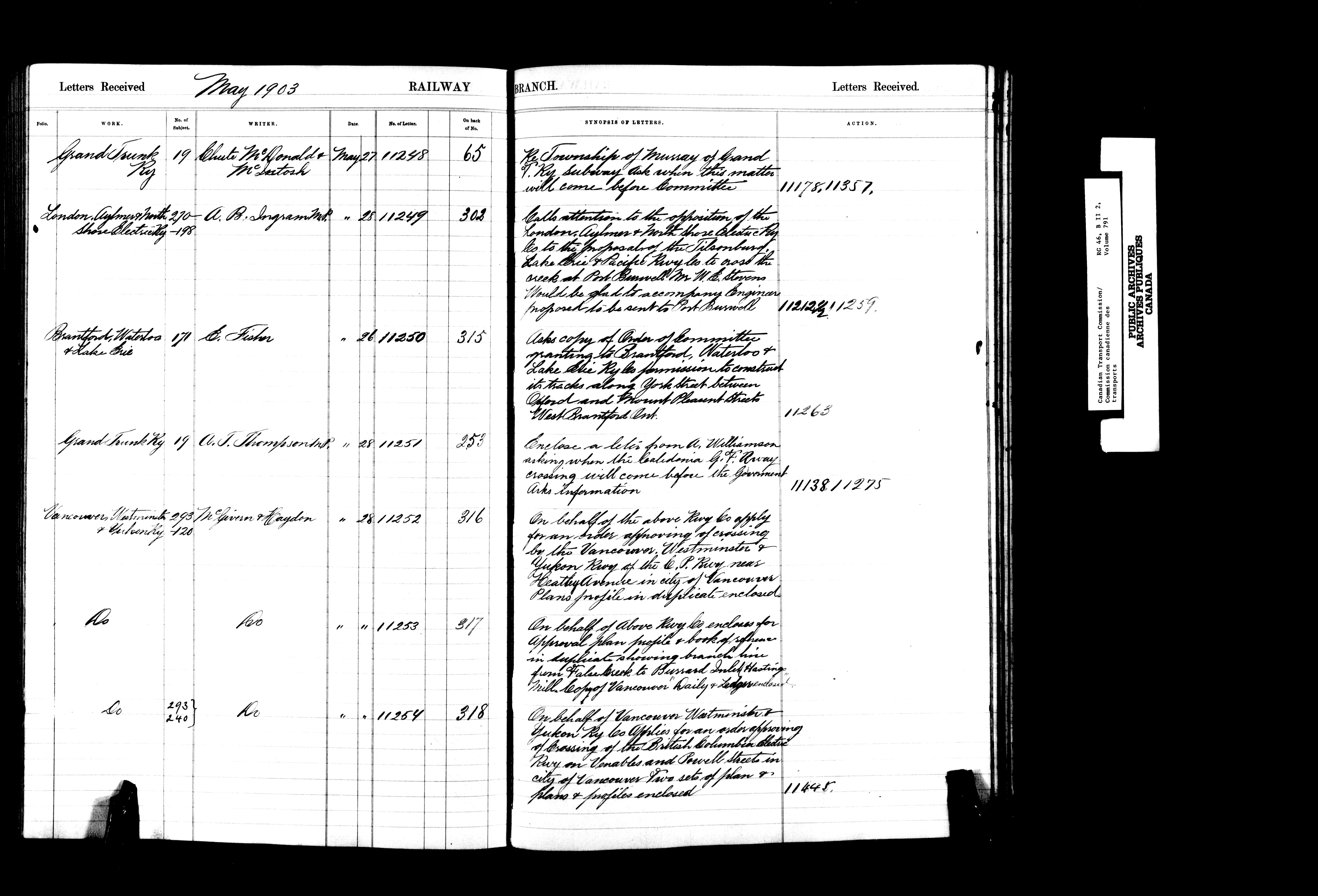 Railway Committee of the Privy Council : Registers of letters received, 1867-1903 - 7200
