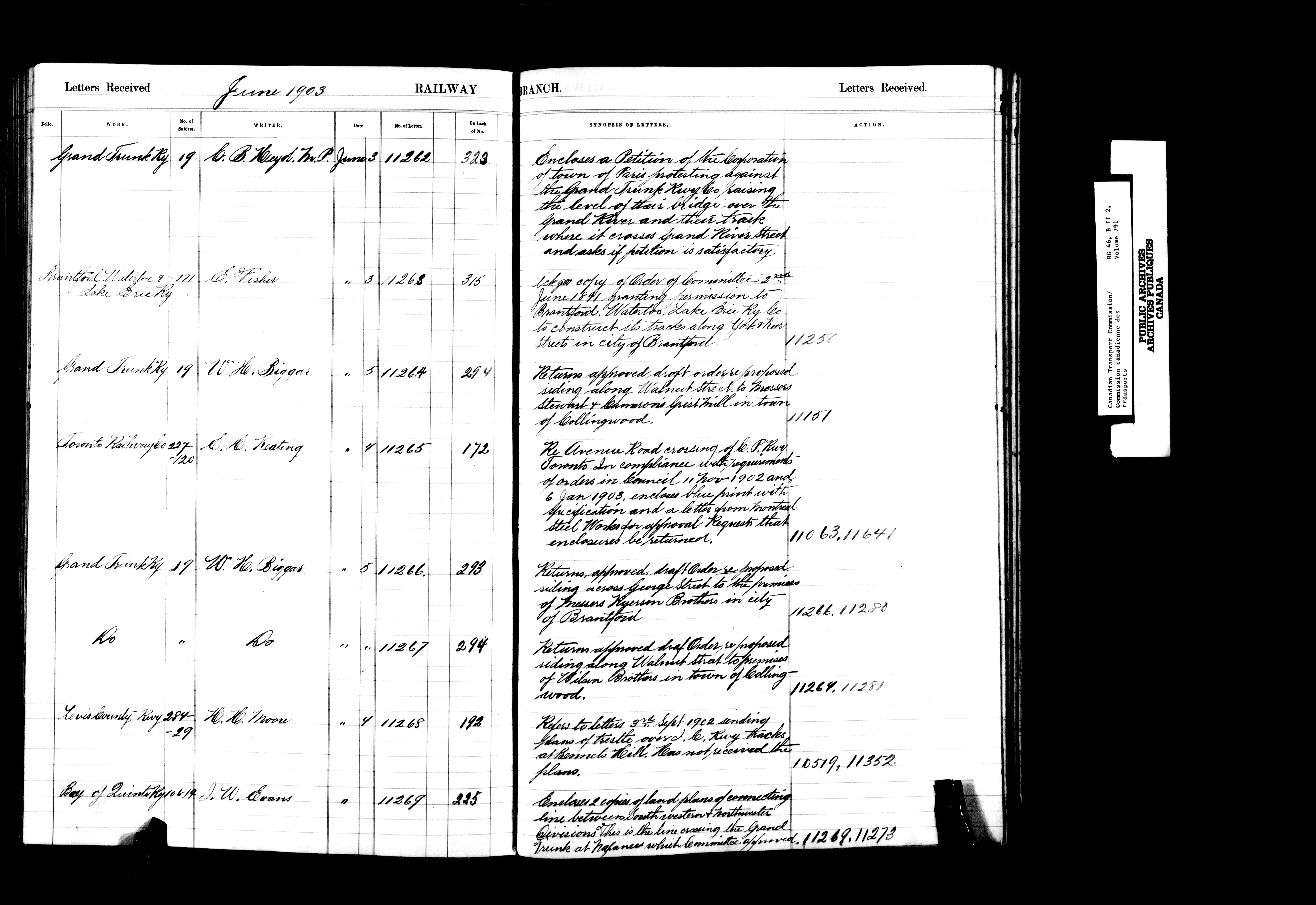 Railway Committee of the Privy Council : Registers of letters received, 1867-1903 - 7200