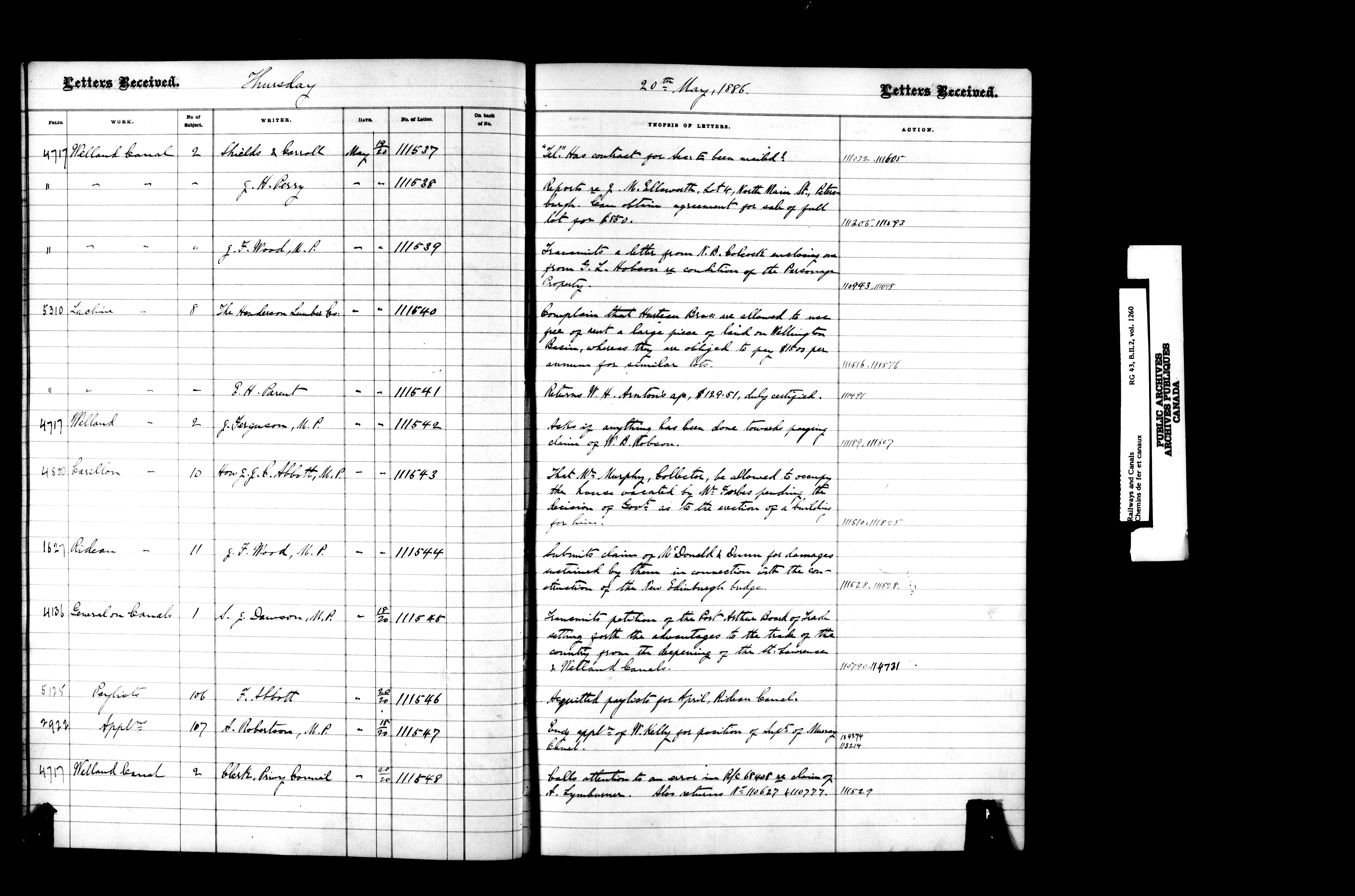 Department of Railways and Canals, Canal Branch : Registers of letters received between January 1881 and December 1892 - 7203