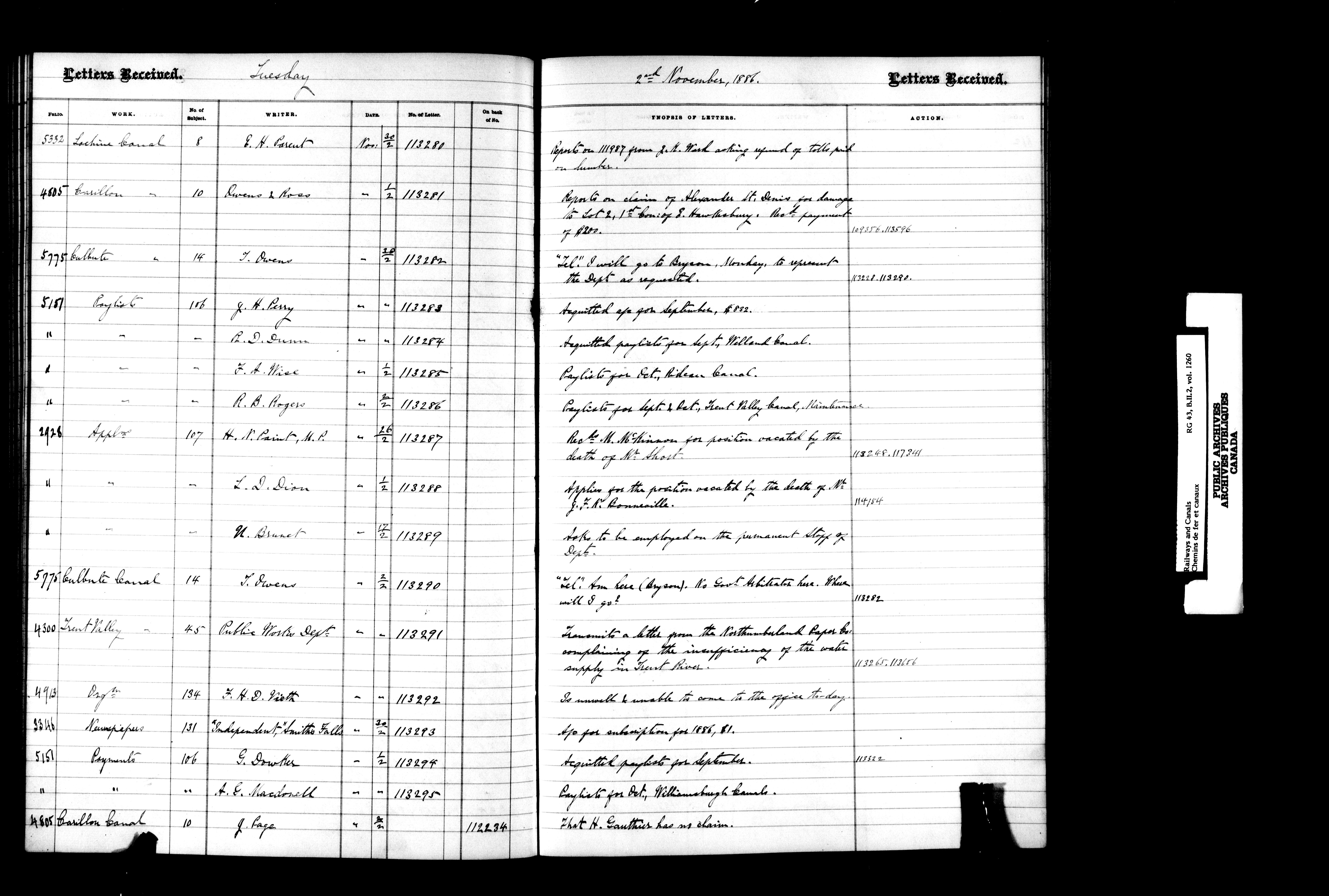 Department of Railways and Canals, Canal Branch : Registers of letters received between January 1881 and December 1892 - 7204