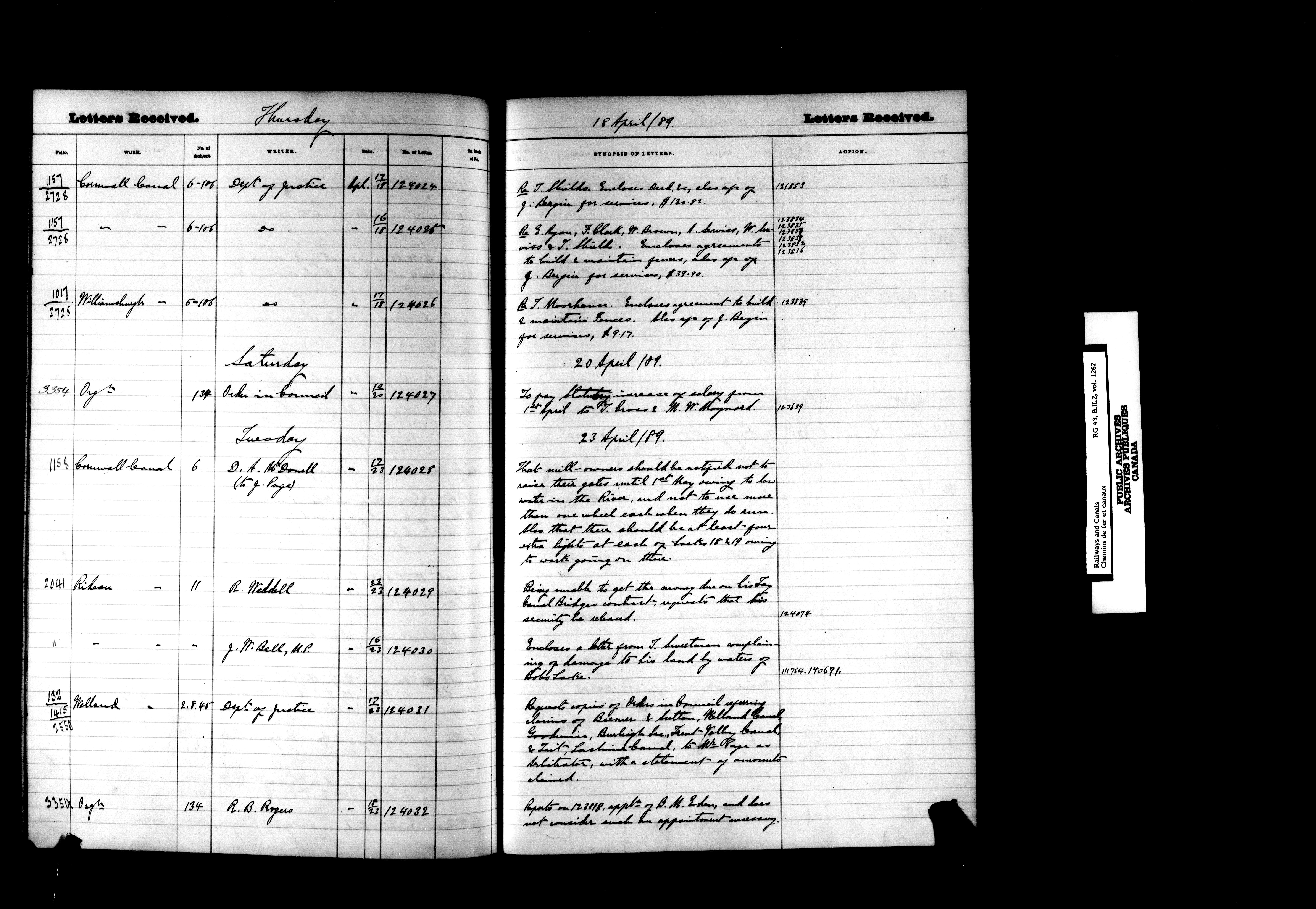 Department of Railways and Canals, Canal Branch : Registers of letters received between January 1881 and December 1892 - 7205