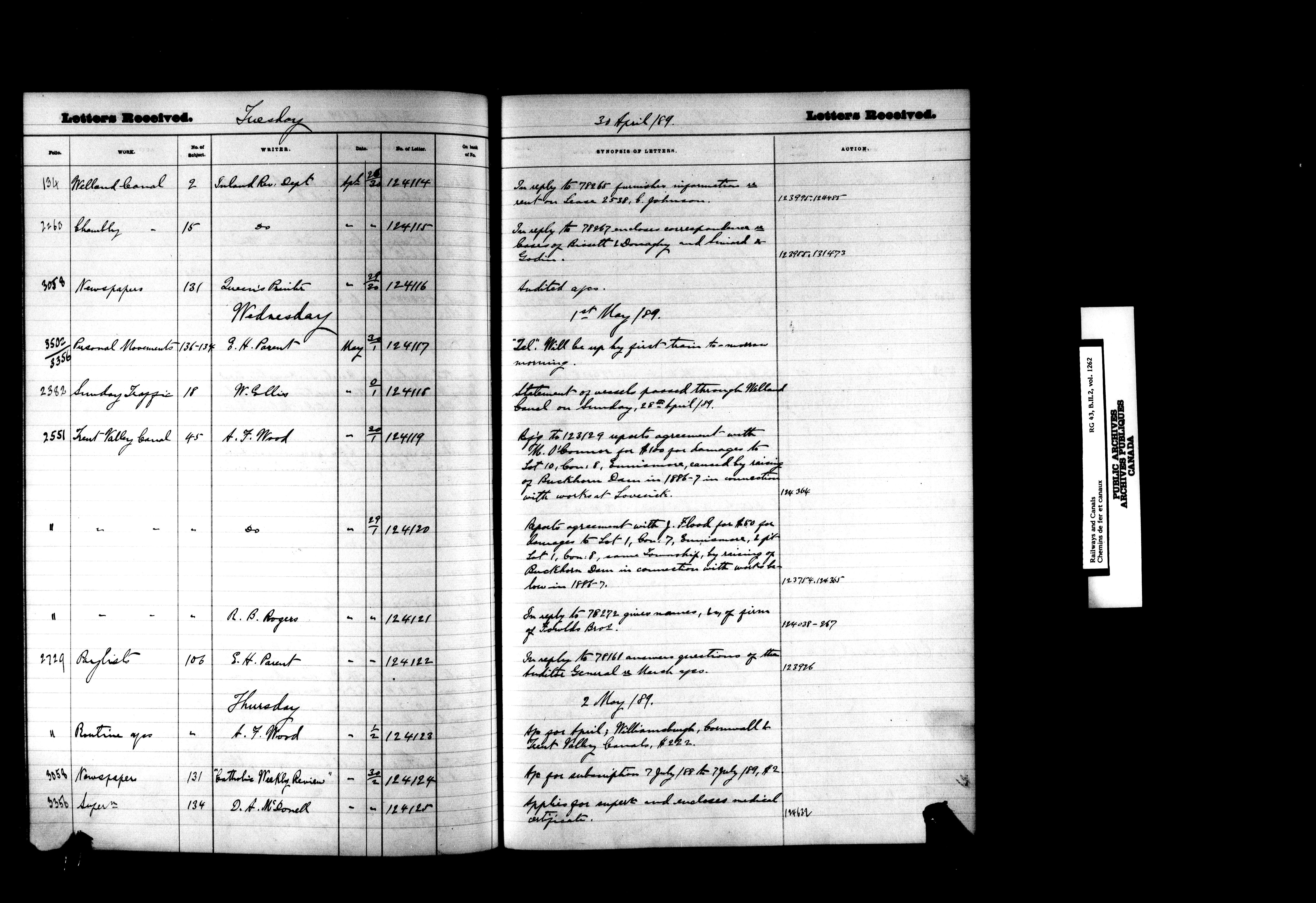 Department of Railways and Canals, Canal Branch : correspondence, registers and indexes, 1838-1936 : T-7205