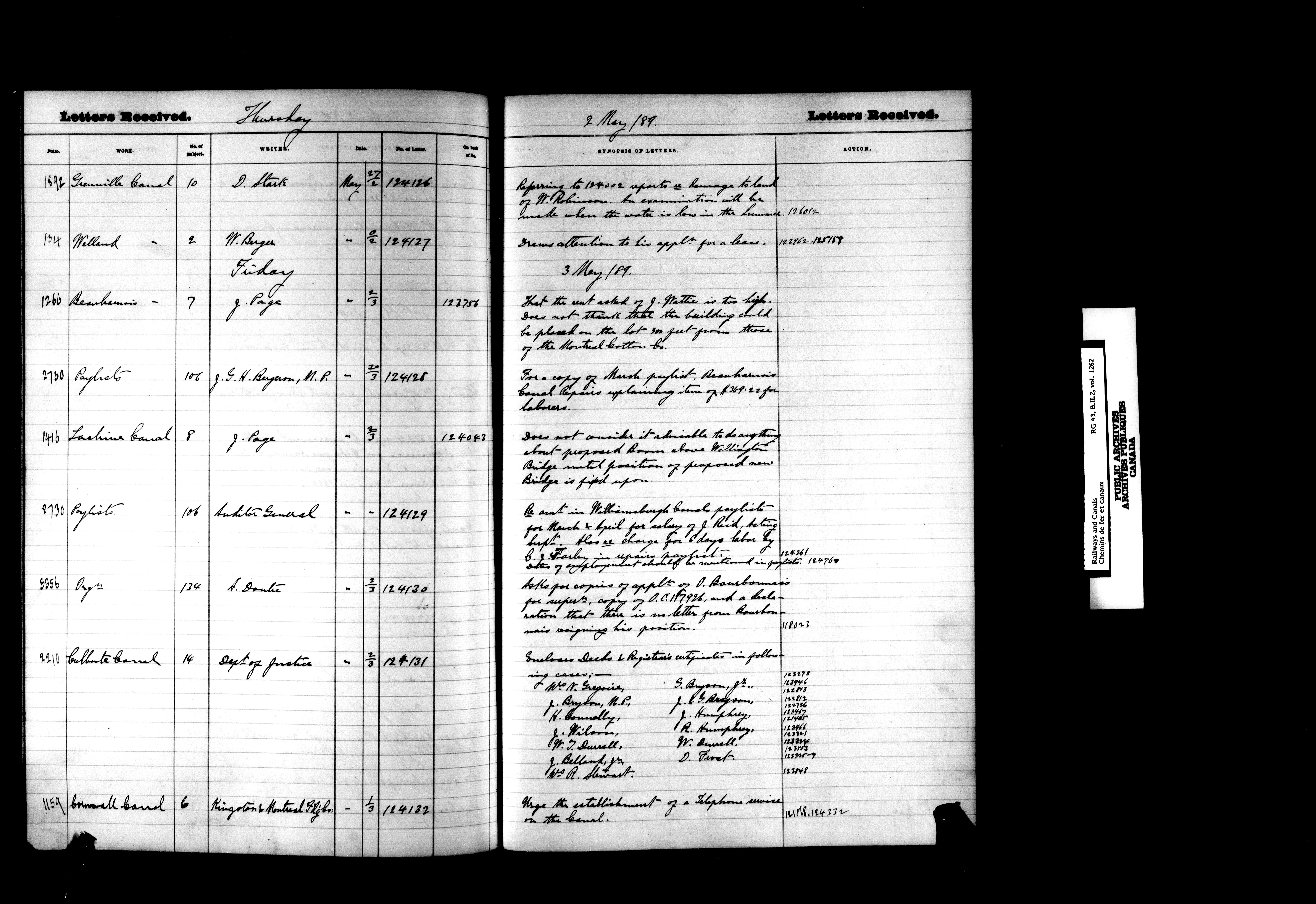 Department of Railways and Canals, Canal Branch : Registers of letters received between January 1881 and December 1892 - 7205