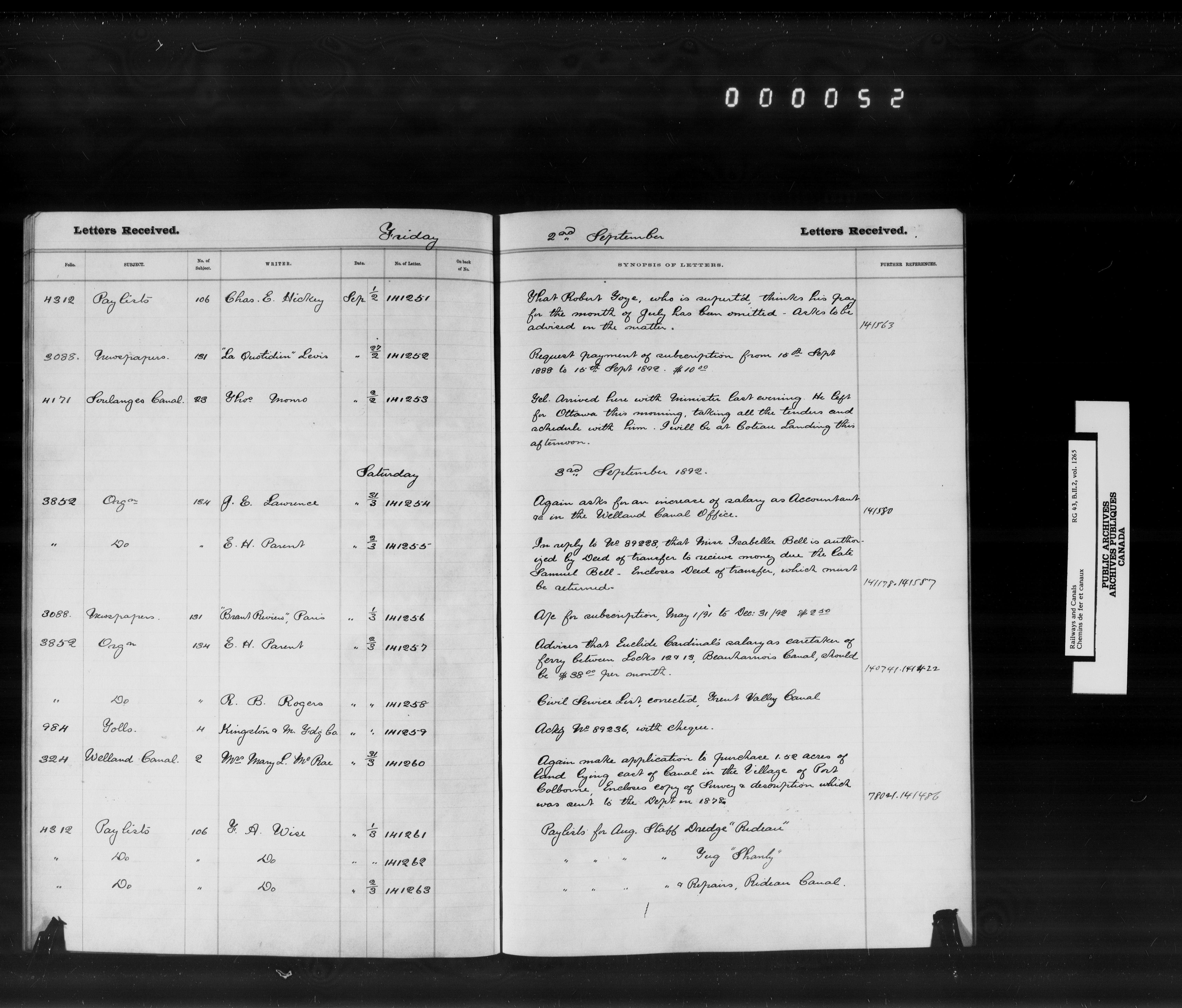 Department of Railways and Canals, Canal Branch : Registers of letters received between January 1881 and December 1892 - 7208