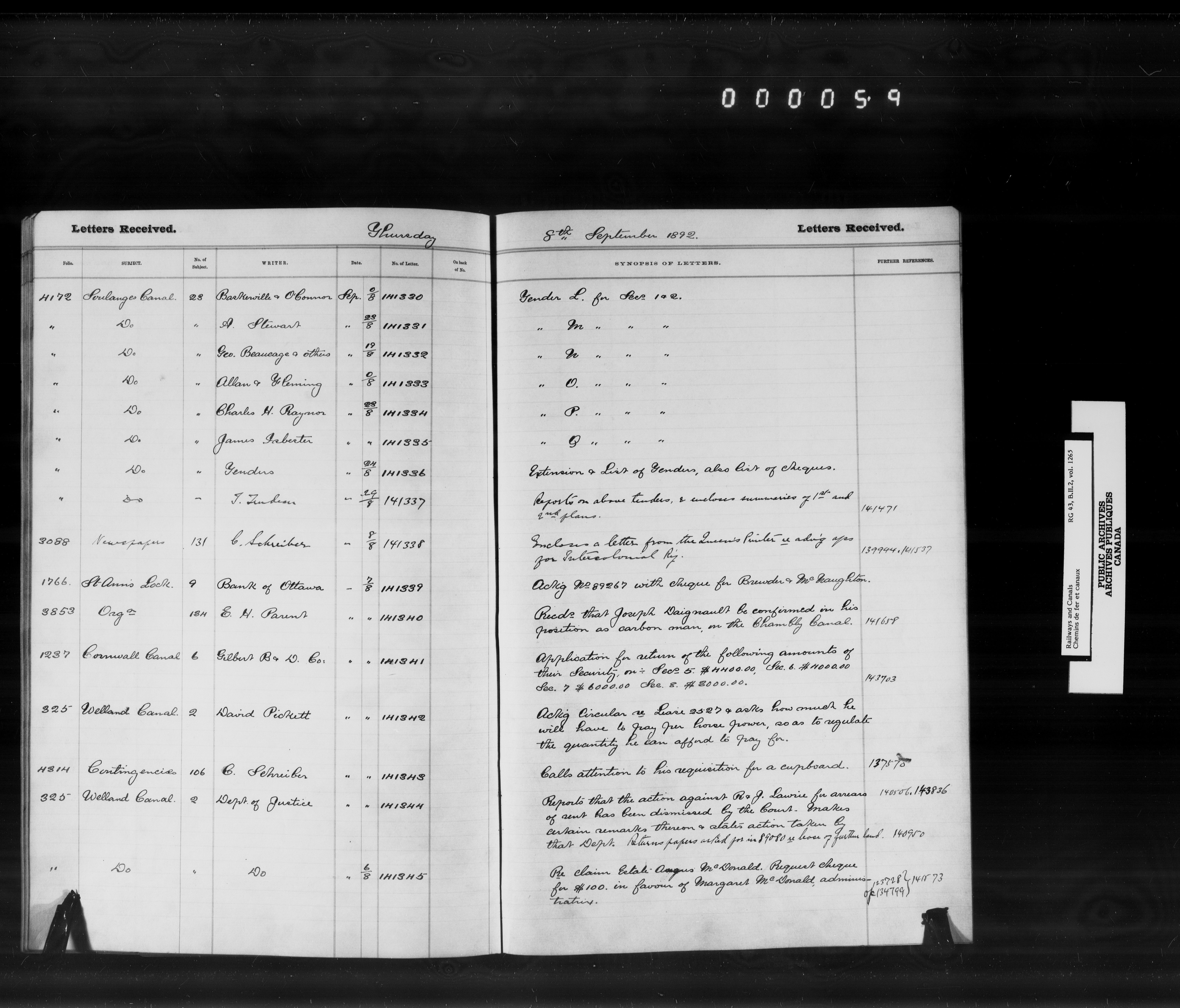Department of Railways and Canals, Canal Branch : Registers of letters received between January 1881 and December 1892 - 7208