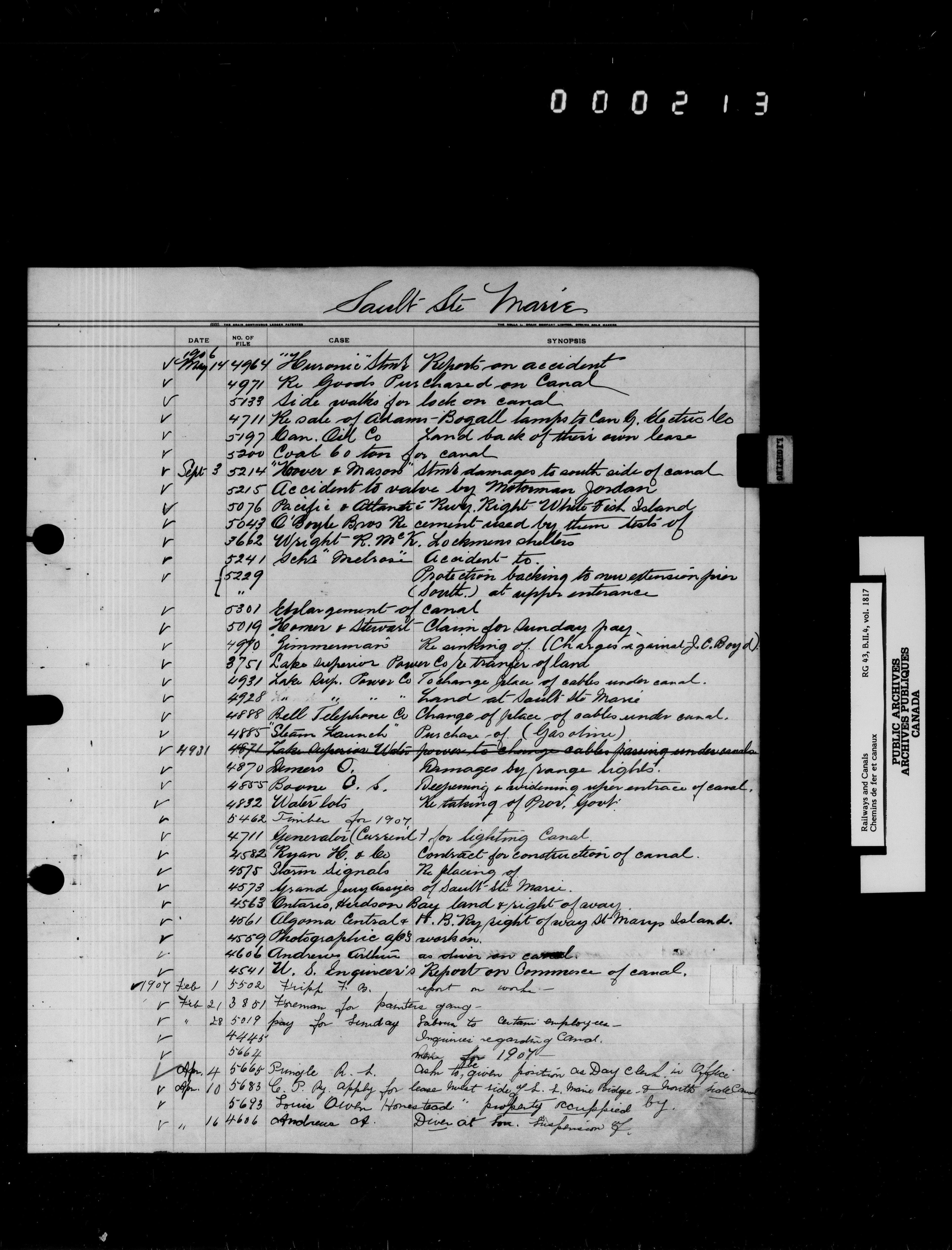 Department of Railways and Canals, Canal Branch : correspondence, registers and indexes, 1838-1936 - 7215
