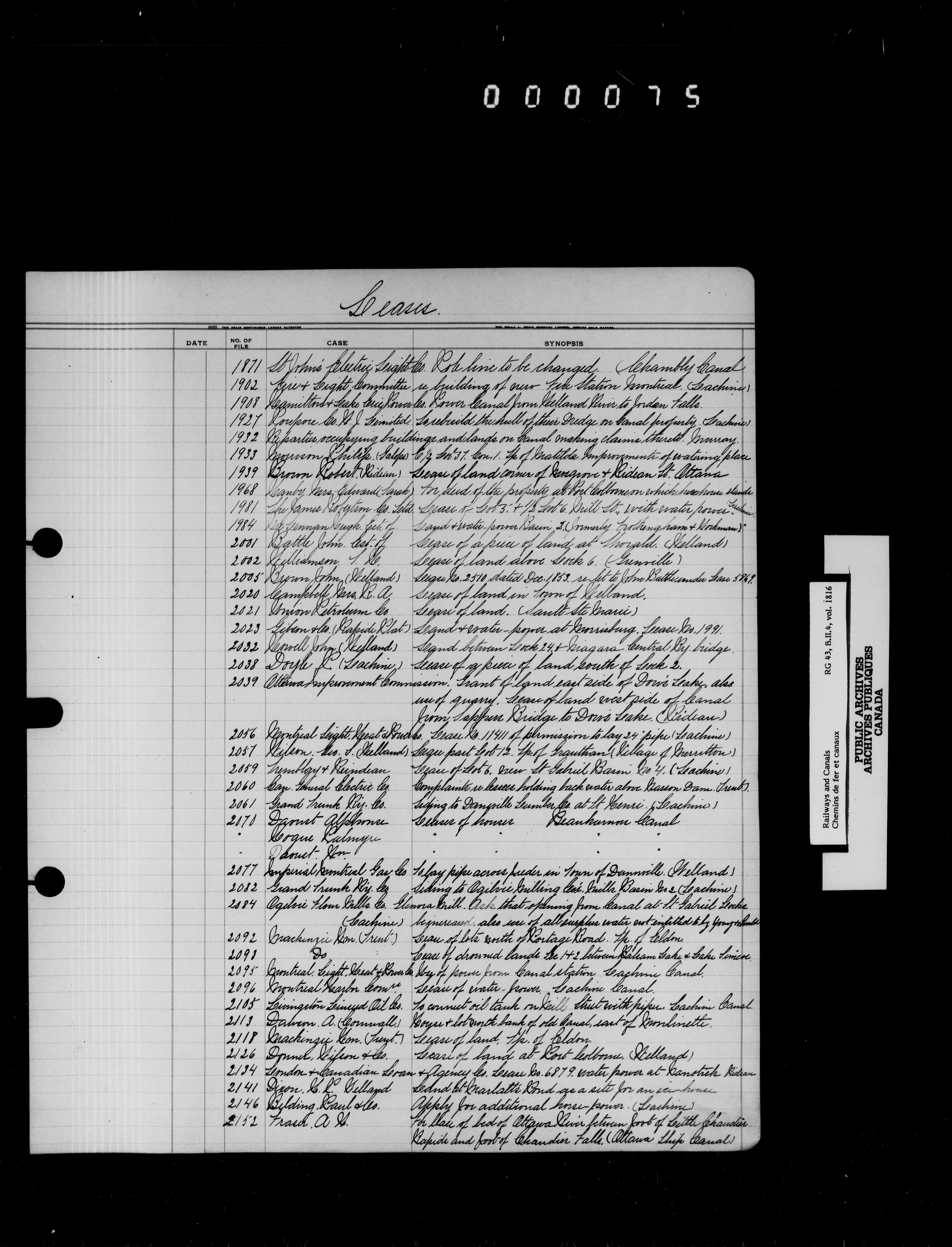 Department of Railways and Canals, Canal Branch : correspondence, registers and indexes, 1838-1936 - 7215