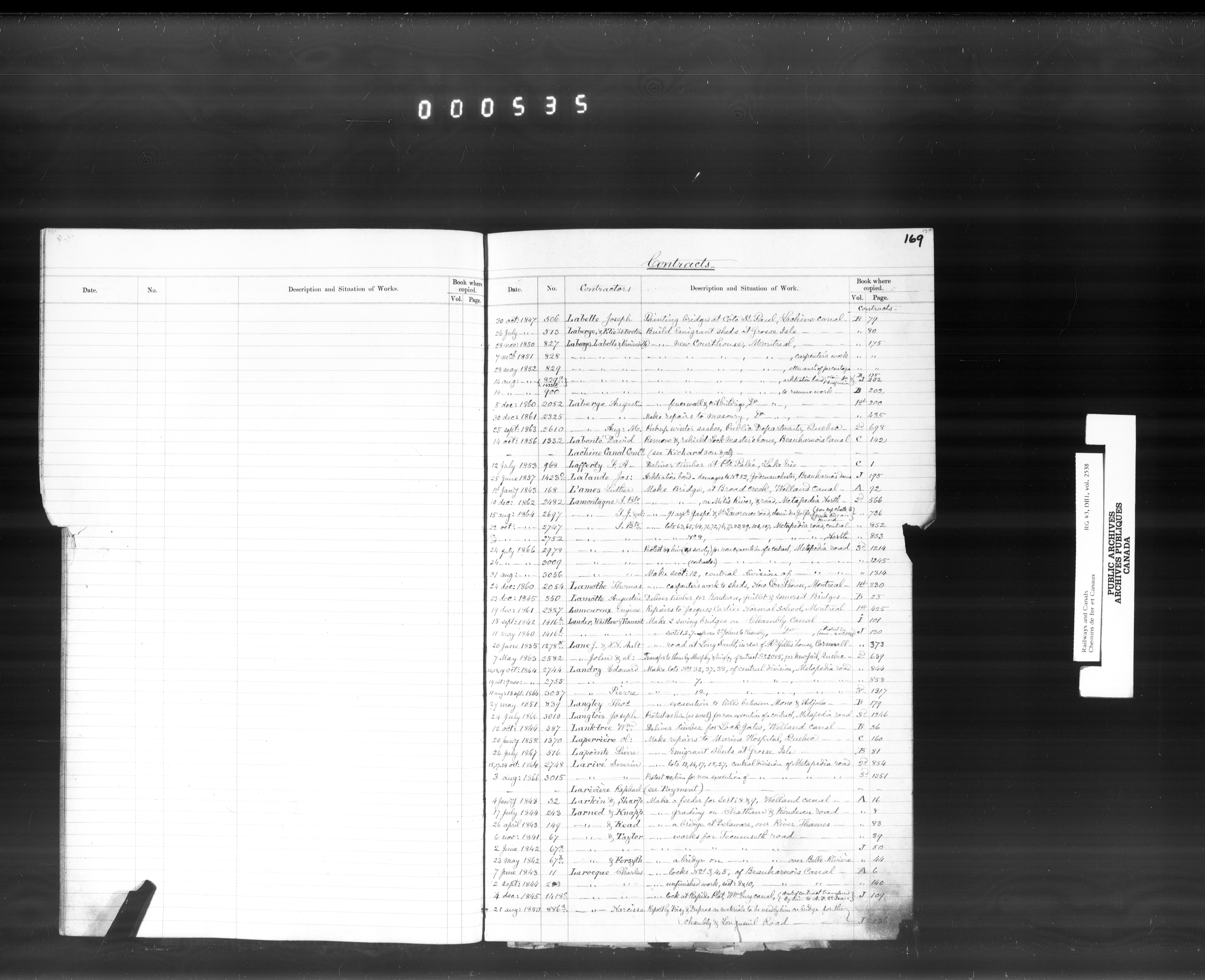 Department of Railways and Canals, Legal records : General and subject indexes, contract and agreement registers, and references to the Exchequer Court. - 7217