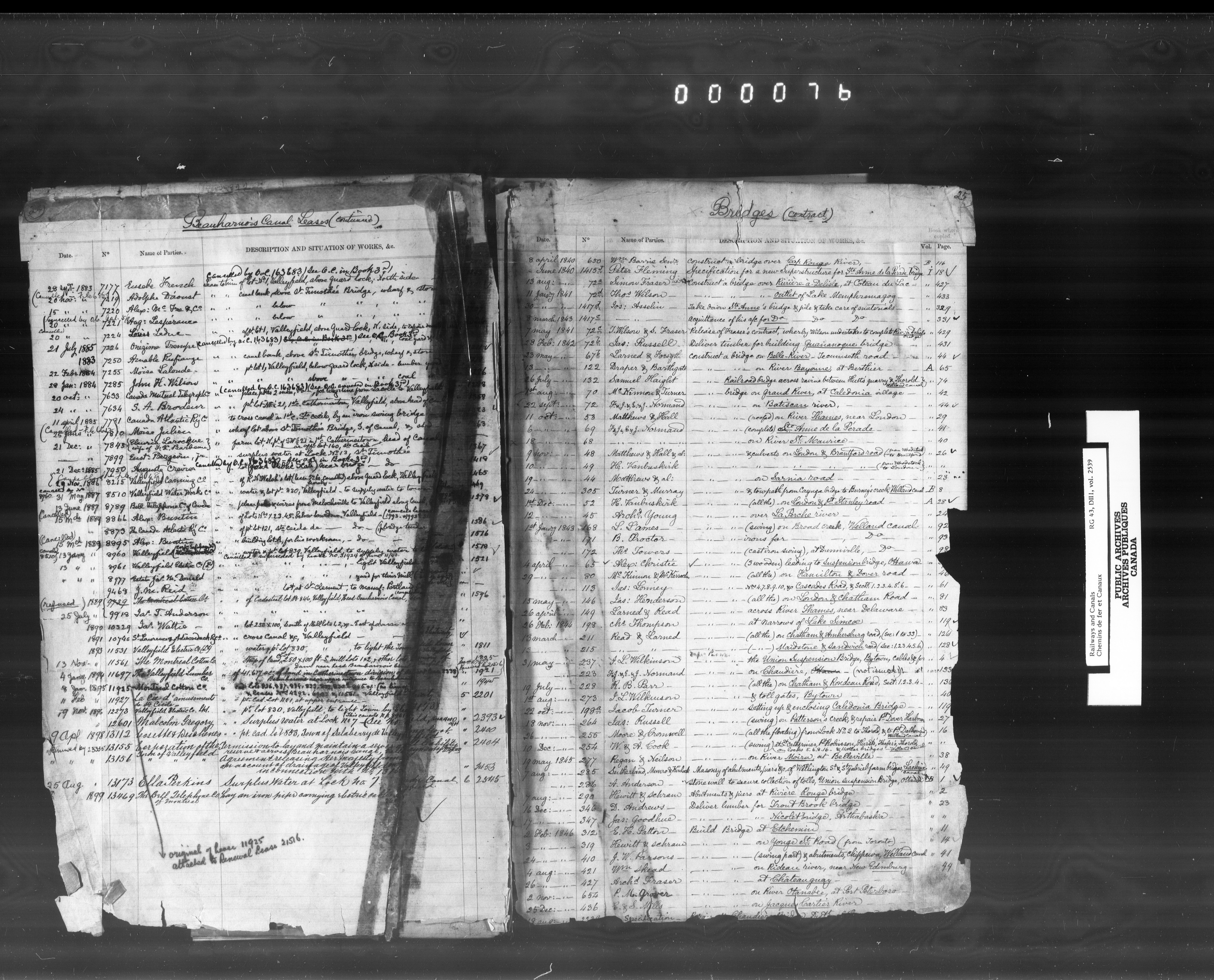 Department of Railways and Canals, Legal records : General and subject indexes, contract and agreement registers, and references to the Exchequer Court. - 7218