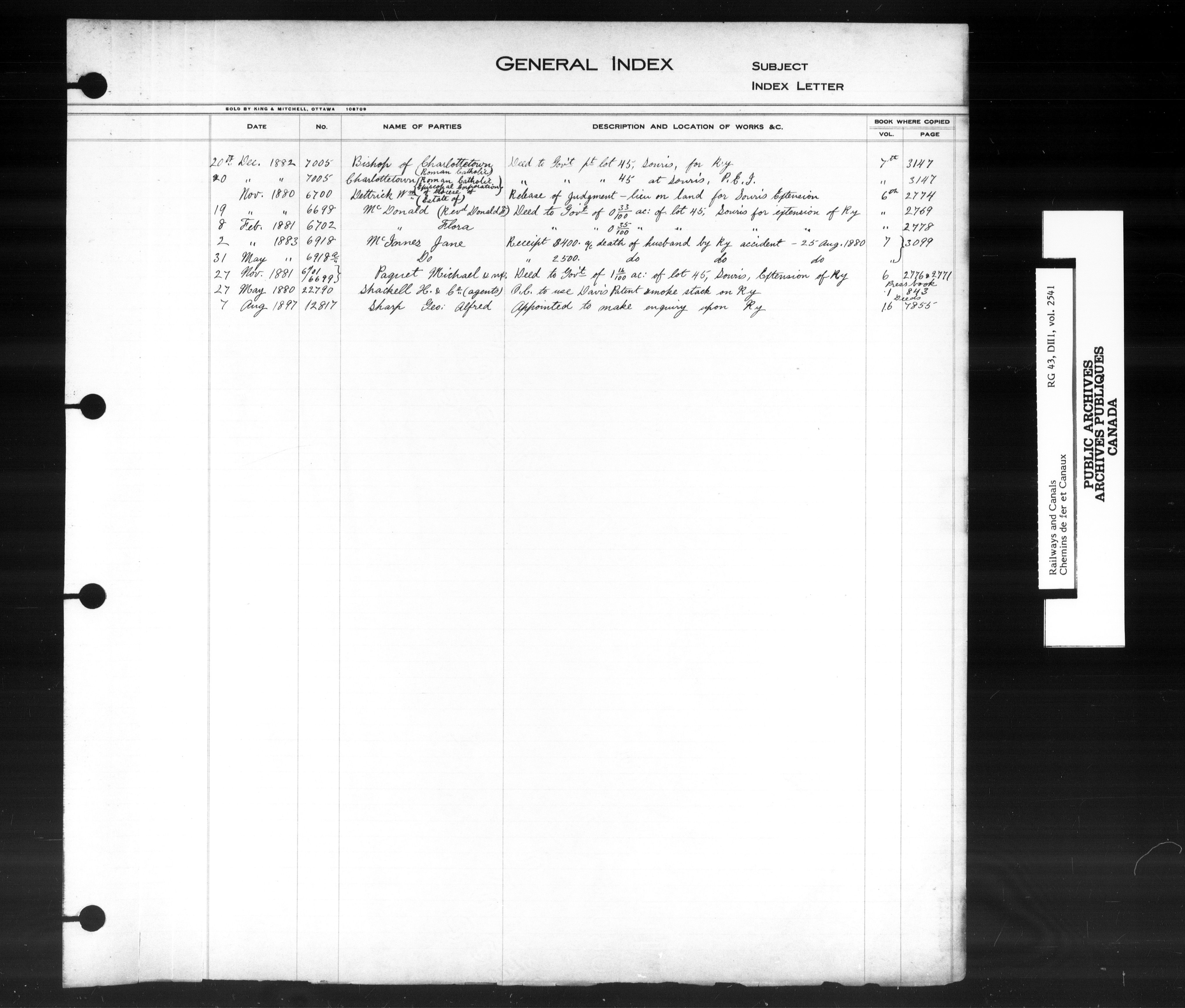 Department of Railways and Canals, Legal records : registers and indexes : T-7219