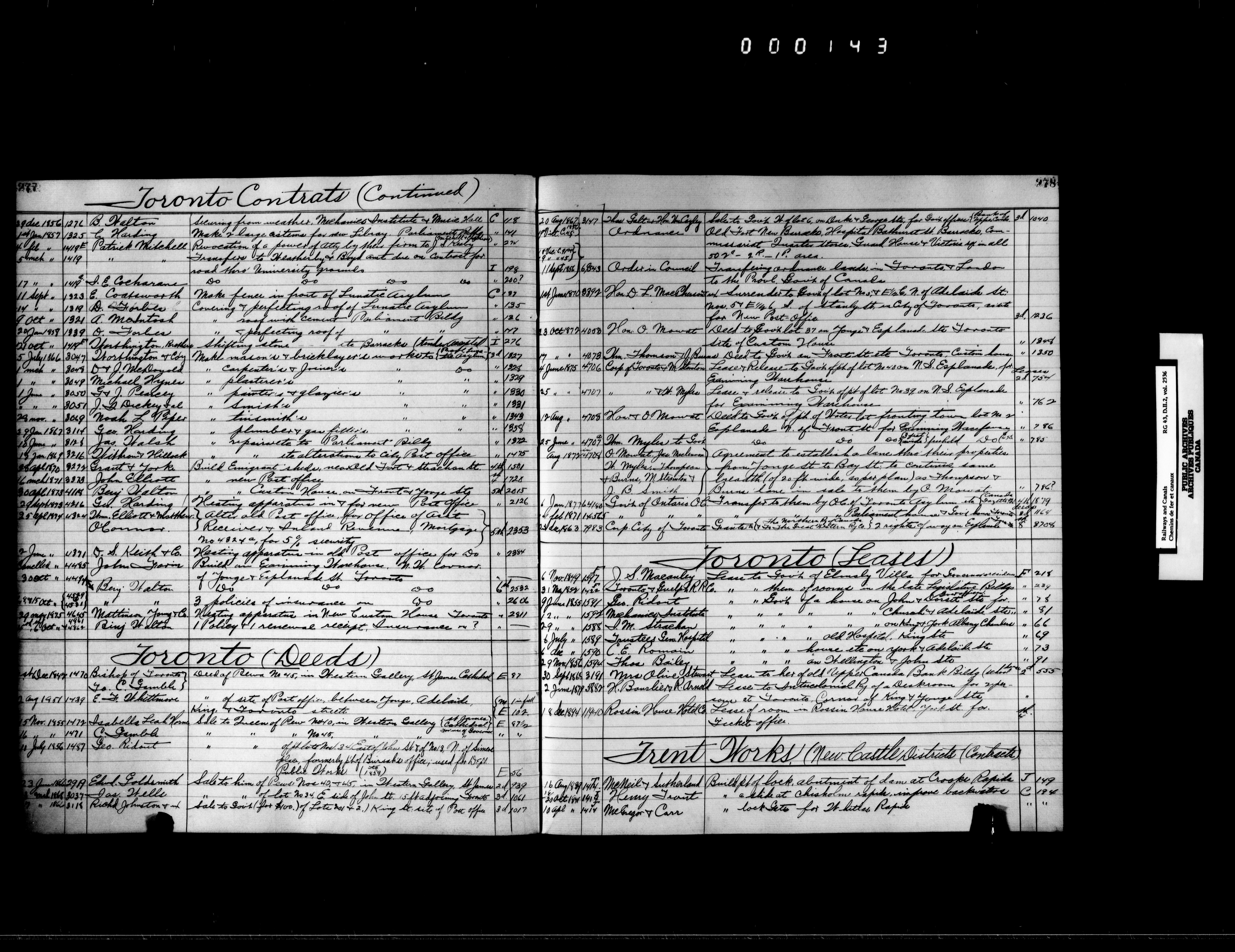 Department of Railways and Canals, Legal records : General and subject indexes, contract and agreement registers, and references to the Exchequer Court - 7220