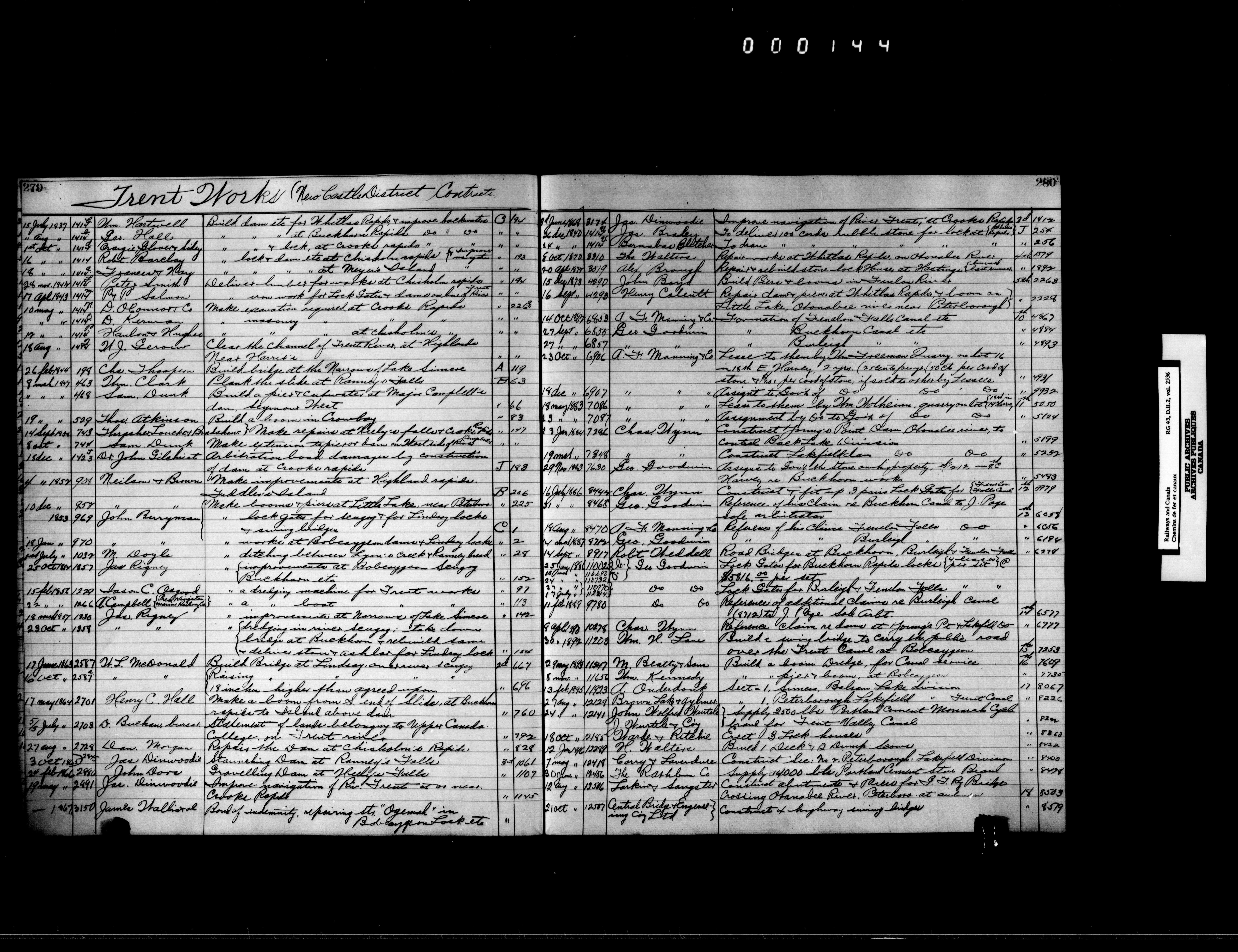 Department of Railways and Canals, Legal records : General and subject indexes, contract and agreement registers, and references to the Exchequer Court - 7220