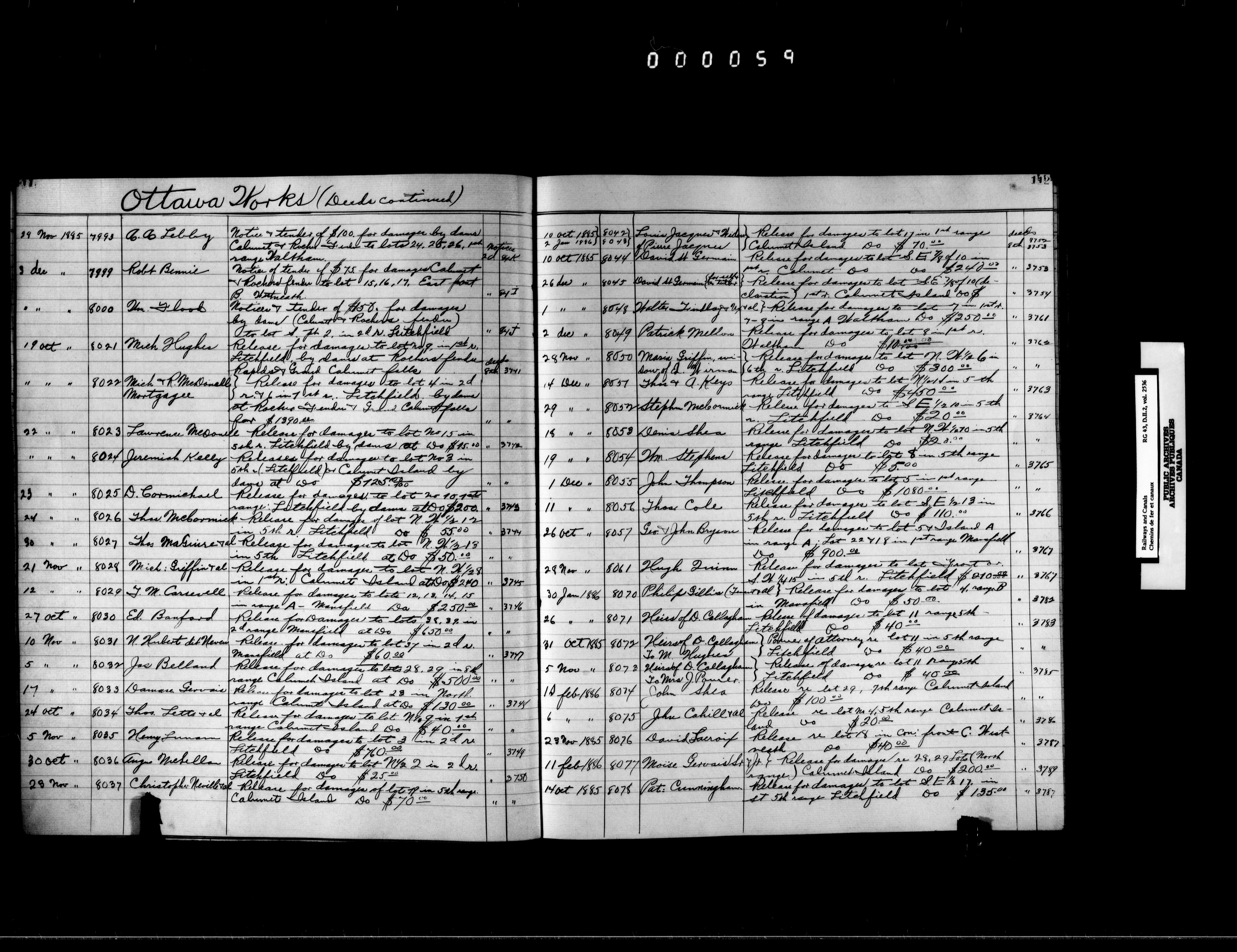 Department of Railways and Canals, Legal records : General and subject indexes, contract and agreement registers, and references to the Exchequer Court - 7220