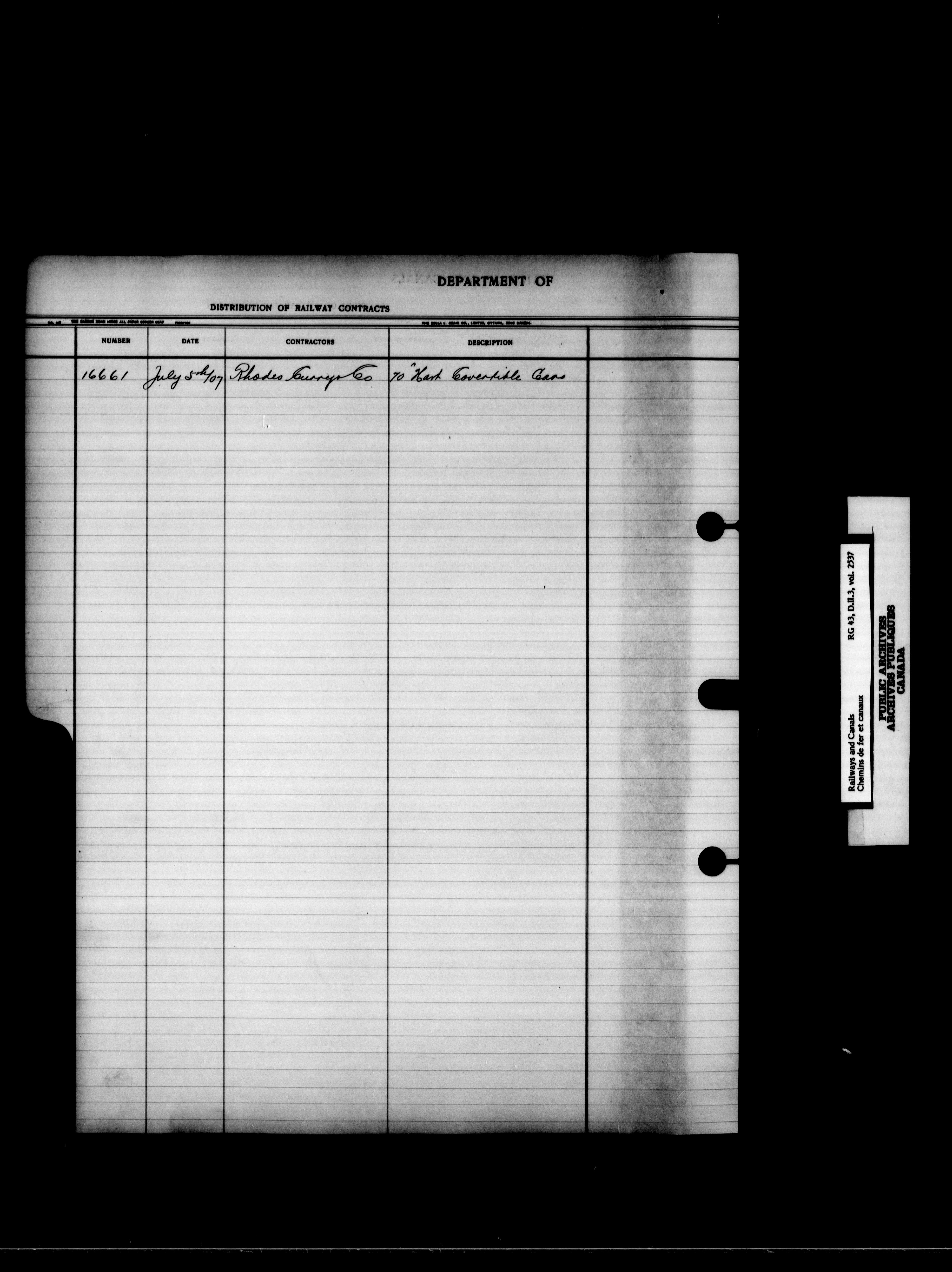 Department of Railways and Canals, Legal records : General and subject indexes, contract and agreement registers, and references to the Exchequer Court. - 7221